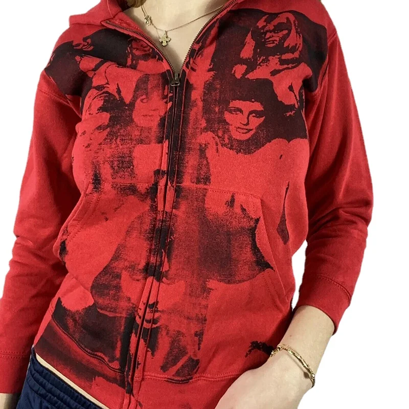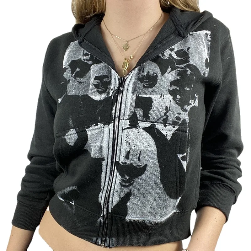 Женская Толстовка С Карманами Y2K, винтажная кофта на молнии с граф...