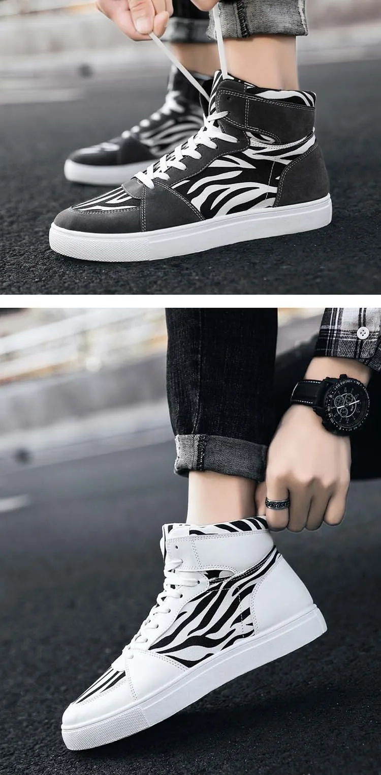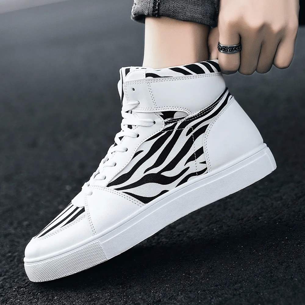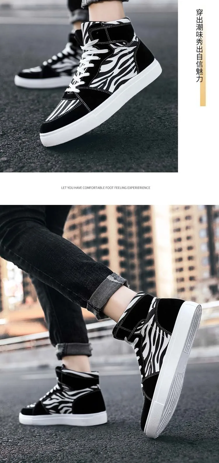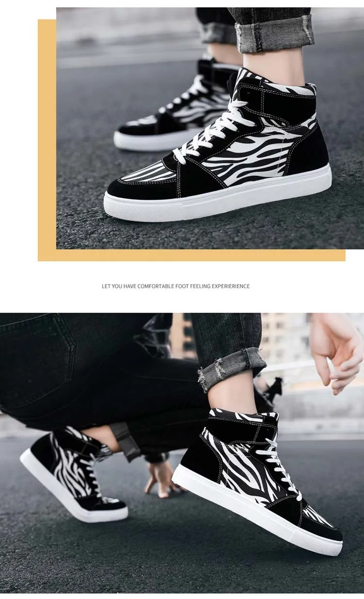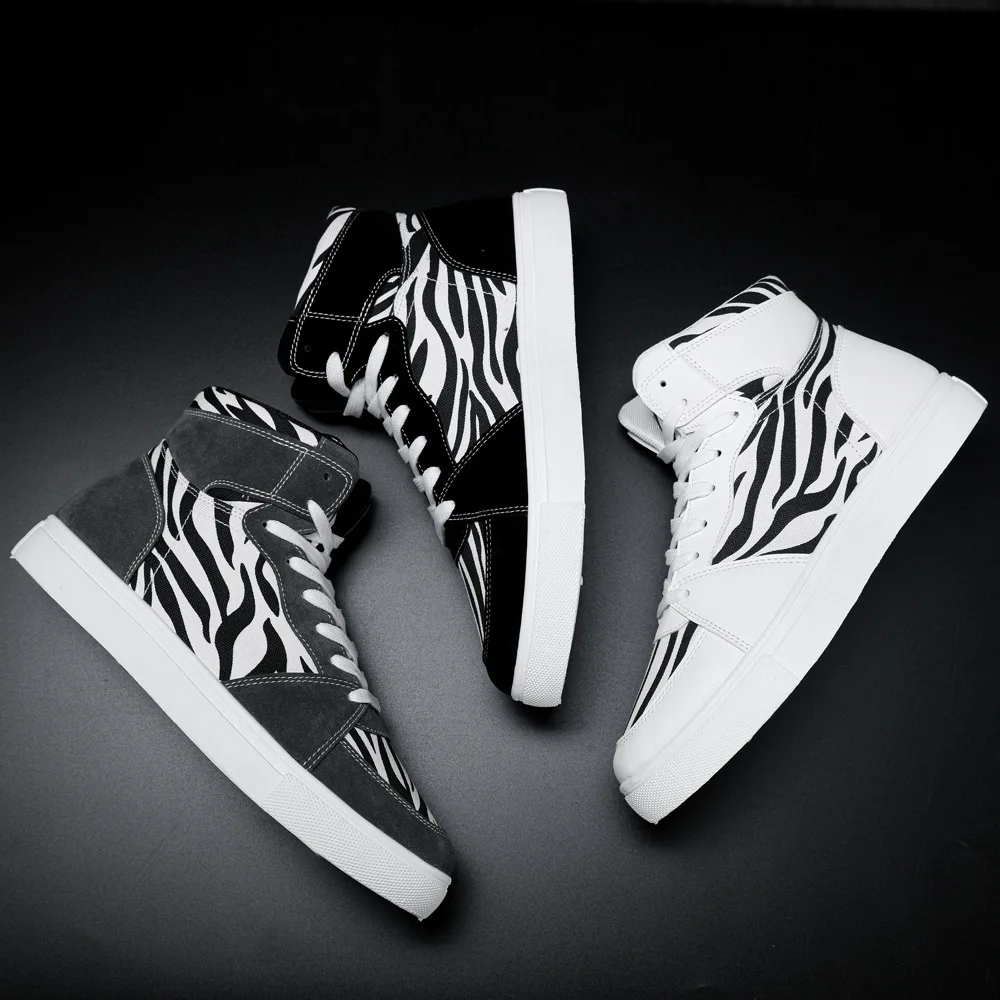 2021 Осенняя мужская Вулканизированная обувь; Новинка; Высокая парусиновая Повседневная обувь; Мужские кроссовки в стиле пэчворк с принтом зебры; Большие размеры; Мужская обувь на плоской подошве; Сезон весна