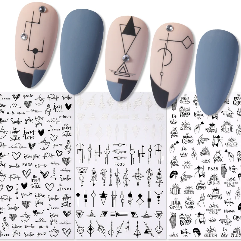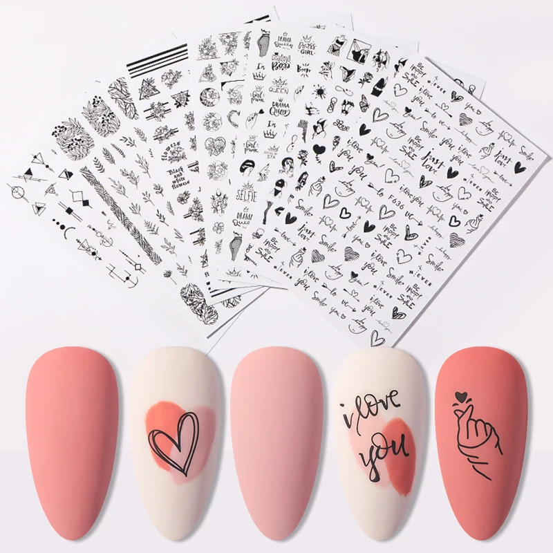День Святого Валентина Маникюр любовь буквы цветок Слайдеры для ногтей Надписи Дизайн ногтей украшение бабочка линии изображения 3D Наклейка Советы