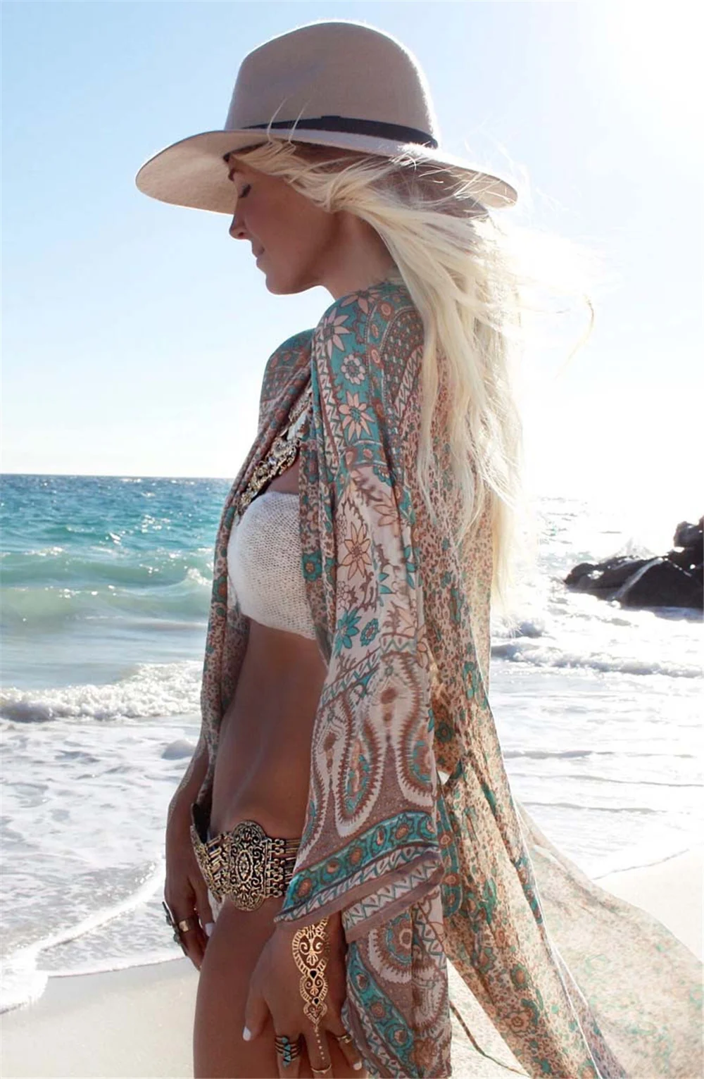 Сексуальная накидка с длинным рукавом, Женский шифоновый Цельный купальник, Длинная пляжная одежда, юбка, туника для контроля живота, купальный костюм Bohe, купальный костюм