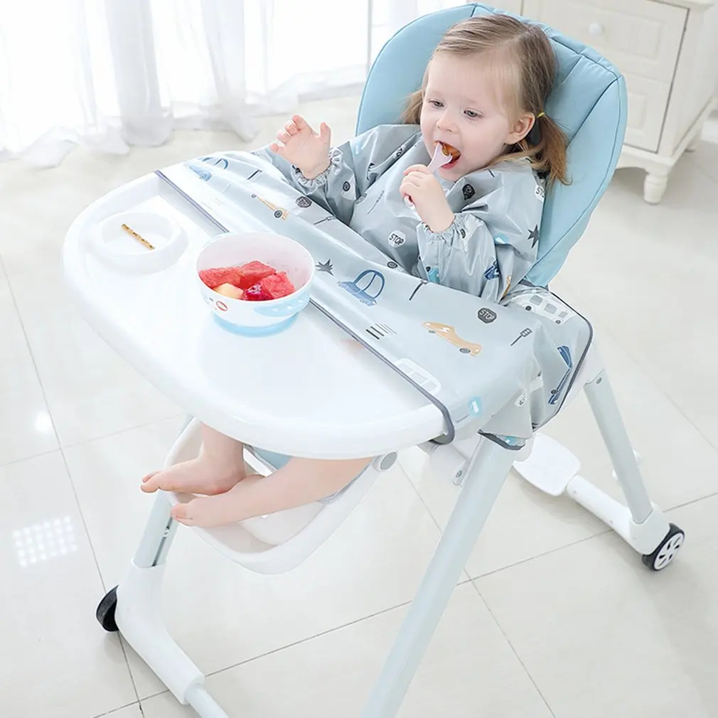 2. Водонепроницаемость всего корпуса: Удалите пятна и целый кусок материала ТПУ для пояса и столешницы, водонепроницаемый и грязеотталкивающий, ребенок не будет мочить одежду внутри во время питья воды и супа, поставляется с хранением.