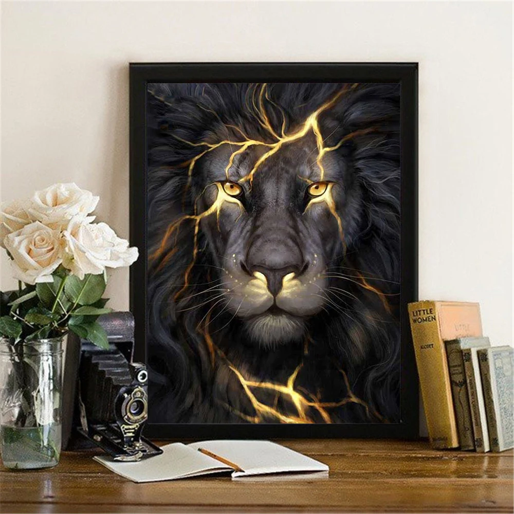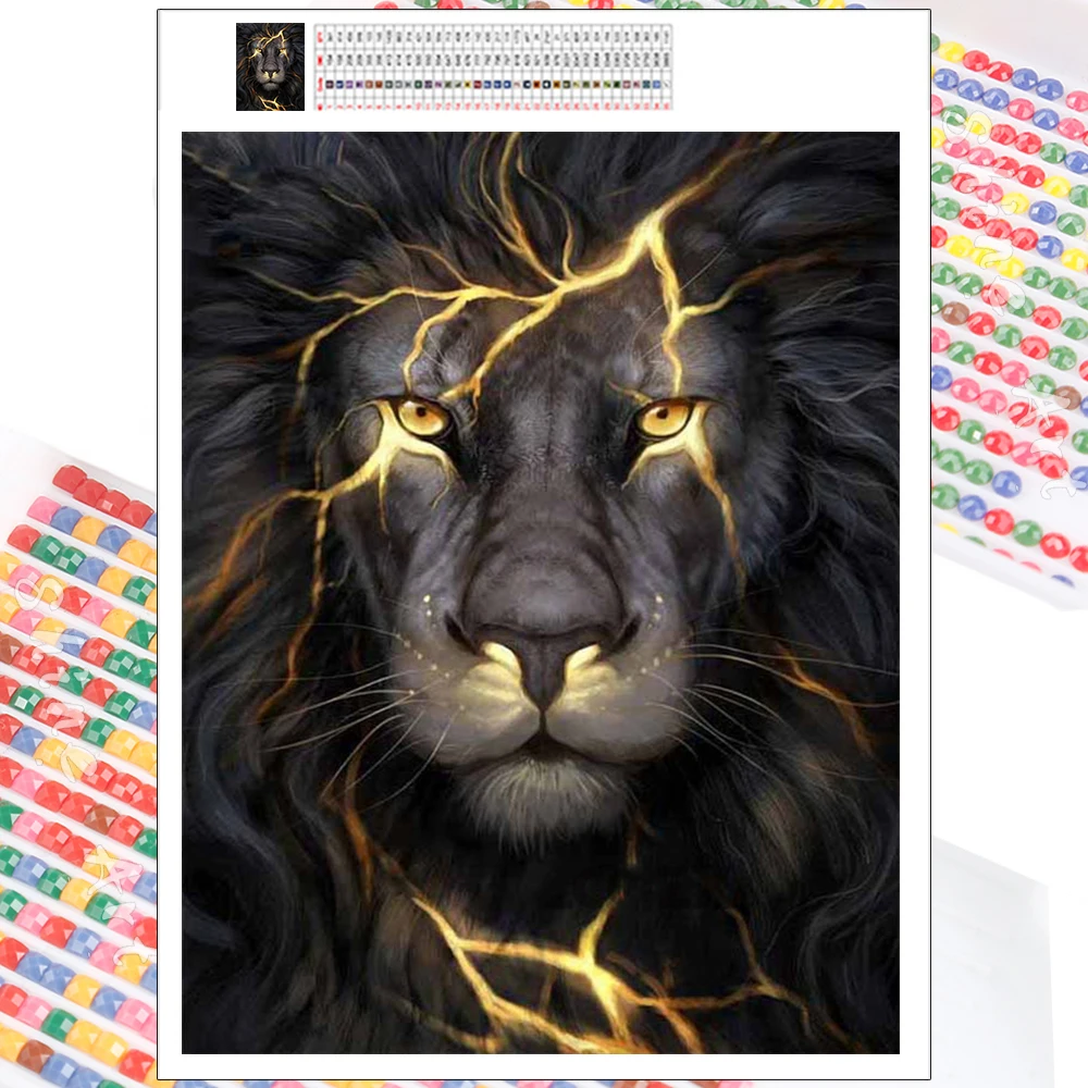 Алмазная 5D картина сделай сам, полноразмерная вышивка с круглыми мультяшными мотивами, с изображением Льва, молнии, с животными, Детская мозаика, домашний декор, подарок