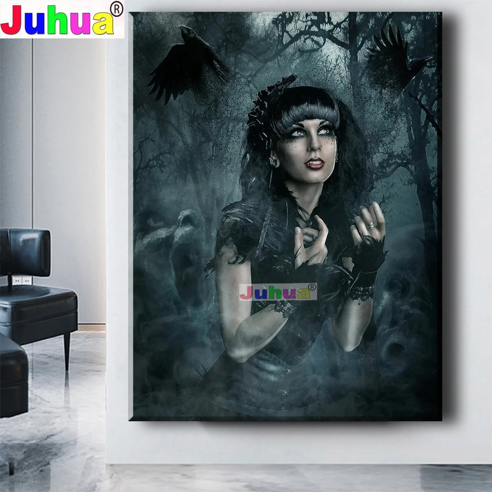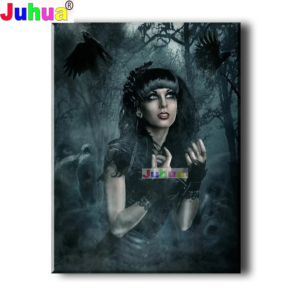 Алмазная живопись 5D "сделай сам", Готическая женщина, вышивка крестиком, полный квадрат, круглая дрель, 3D Алмазная живопись, набор для украшения дома, подарок для женщины