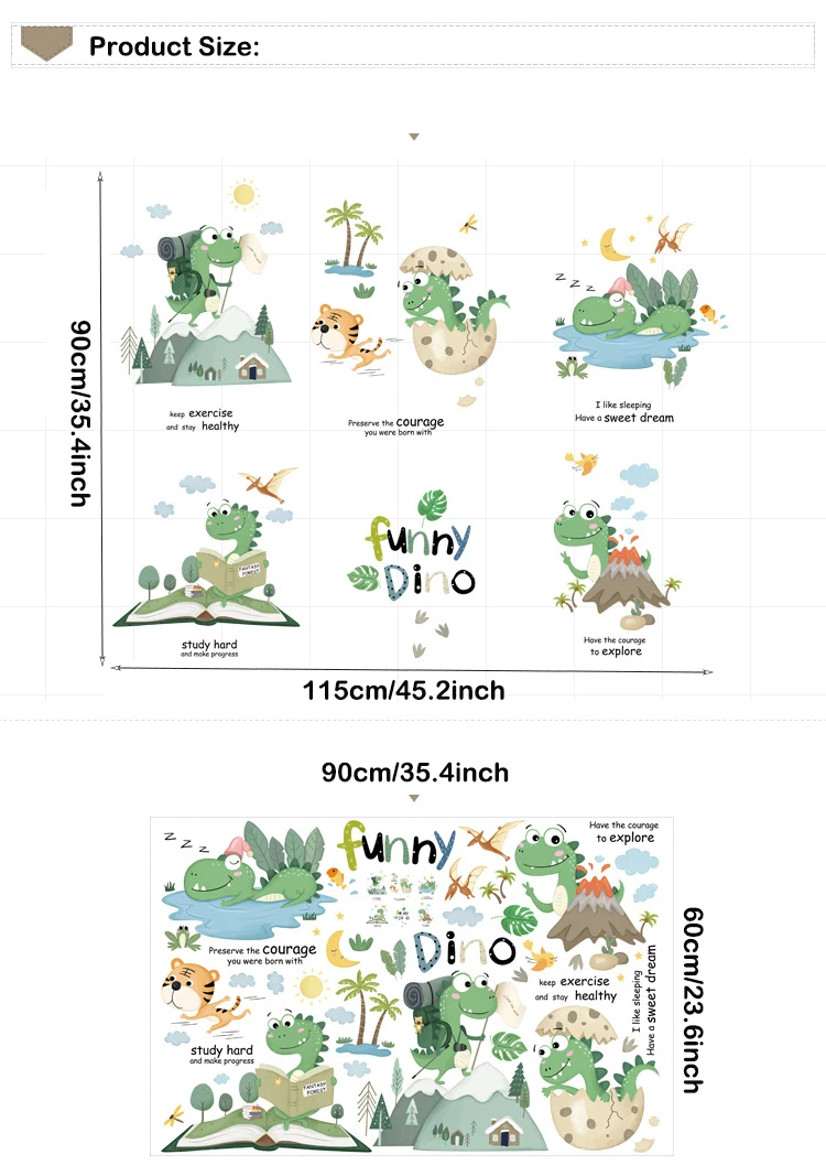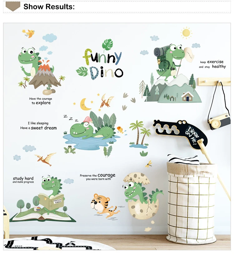 Настенные наклейки в виде динозавра для детской комнаты, Мультяшные животные, домашний декор, спальня, декоративные виниловые стены, украшение для комнаты из ПВХ