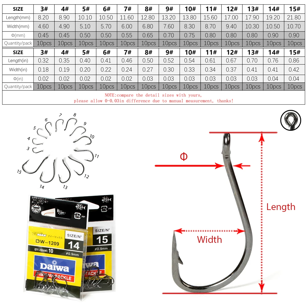 Рыболовные крючки DAIWA 1030 шт.компл., суперострые и износостойкие крючки для узкой приманки, размер 3-15, черные аксессуары