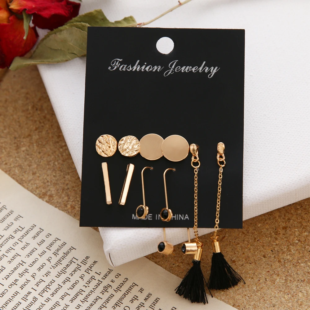 FNIO Мода кисточкой серьги-капельки, серьги для женщин, трендовые, золото, геометрически цепи серьги новый набор, ювелирное изделие