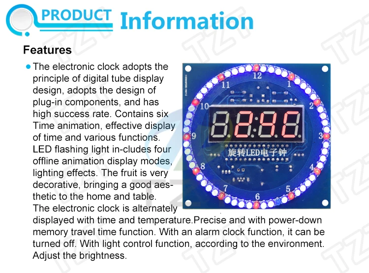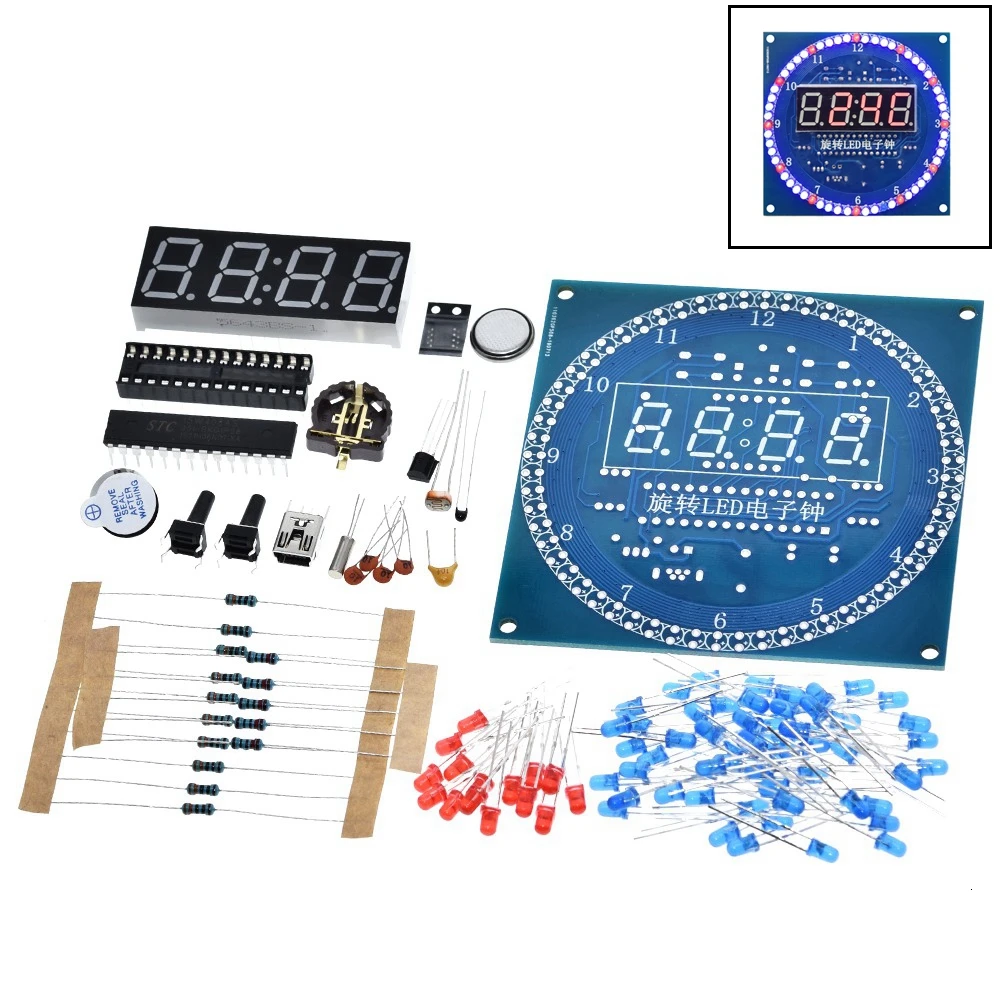 Вращающийся светодиодный дисплей DS1302, электронный модуль будильника, комплект для самостоятельной сборки, светодиодный дисплей температуры