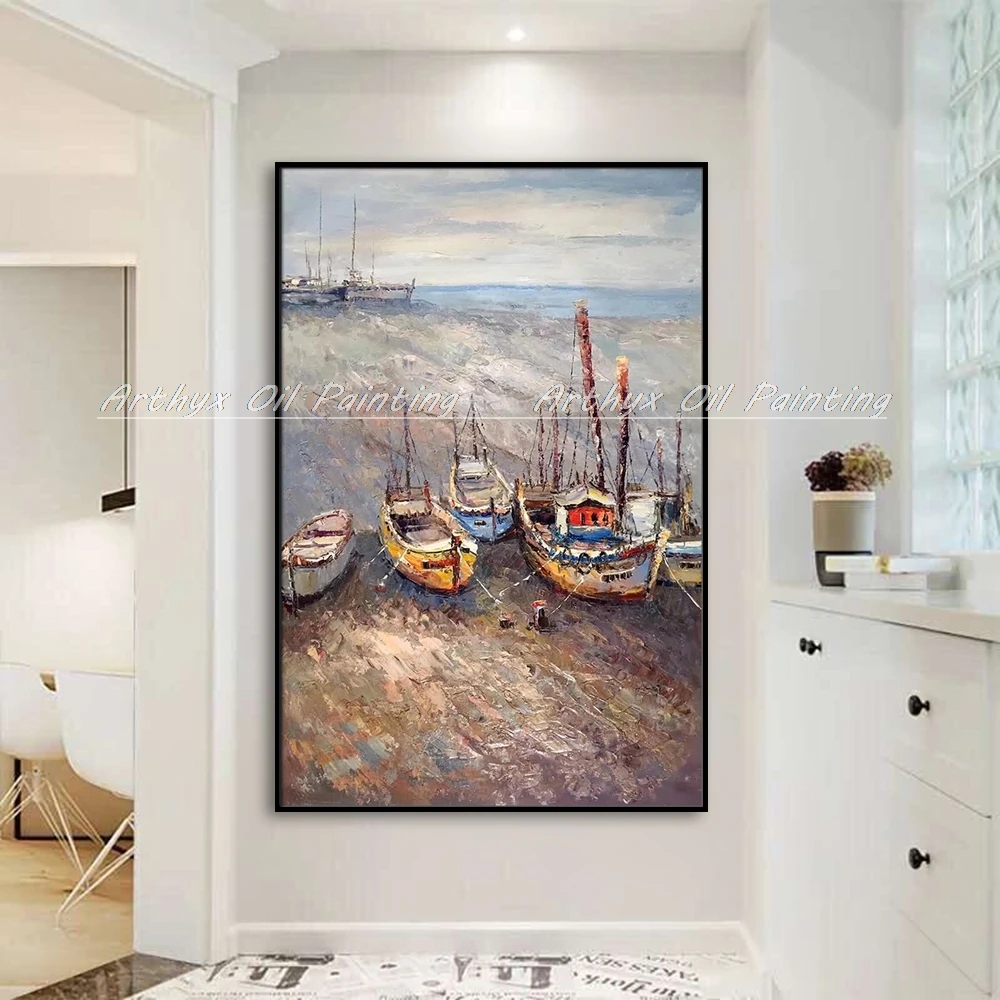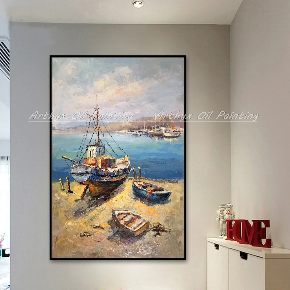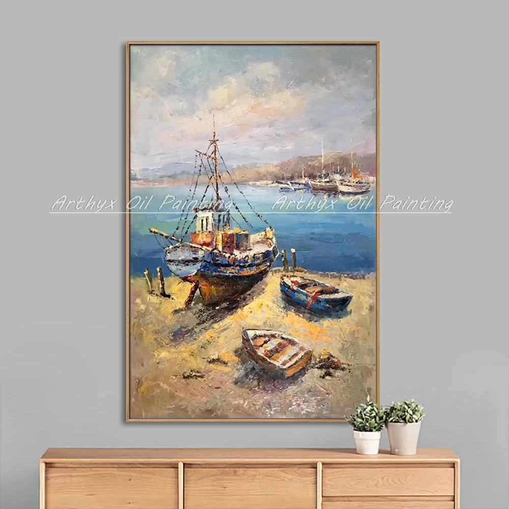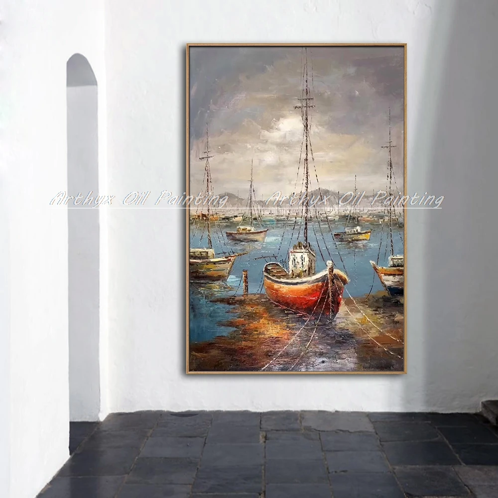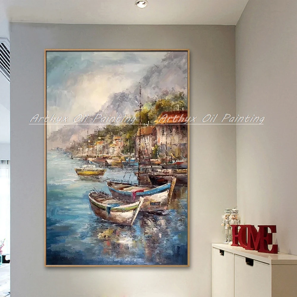 Arthyx Harbor Wharf Boat, пейзаж, картина маслом на холсте, ручная работа, современные абстрактные настенные художественные картины для гостиной, домашний декор