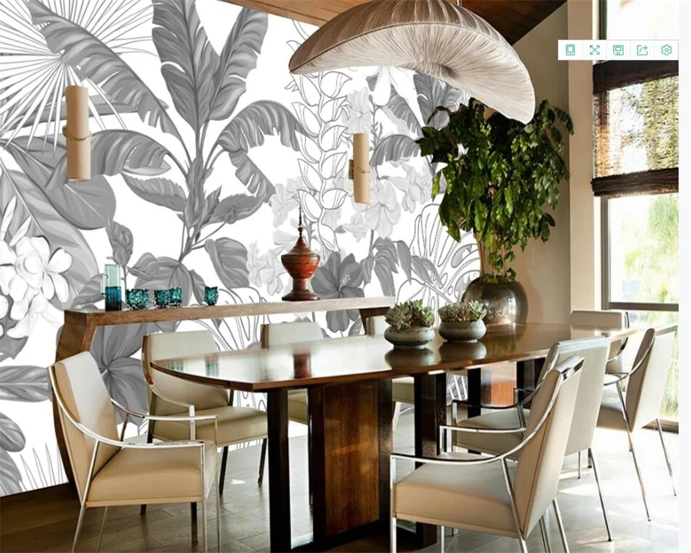 Фотообои на заказ с изображением тропических лесов черно-белых листьев банана, дерева, современные самоклеящиеся 3D-обои для телевизора, дивана