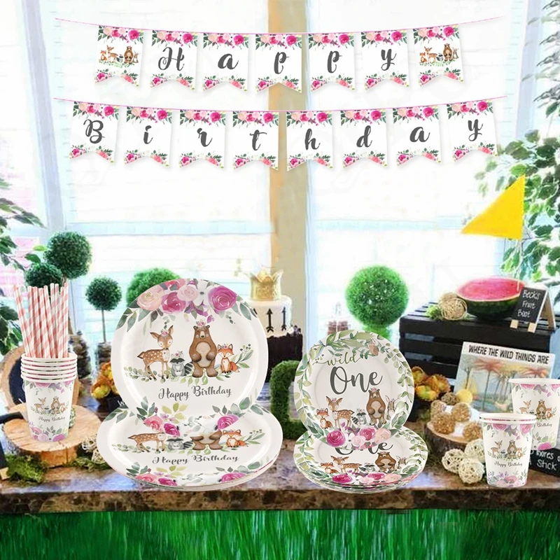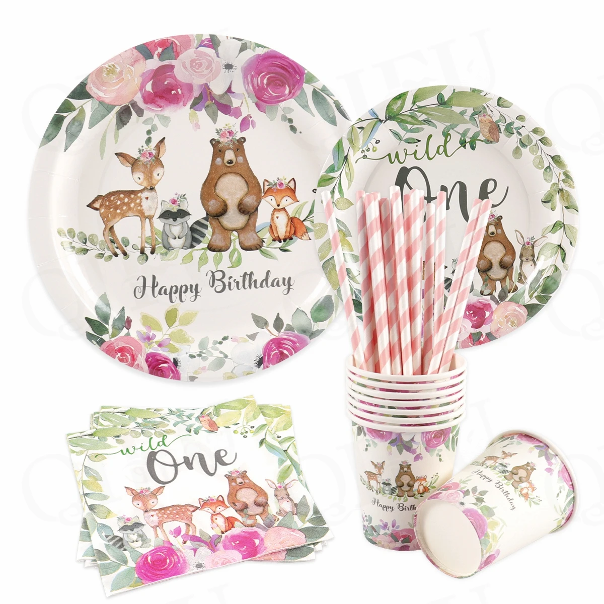 QIFU джунгли посуда в виде животных набор диких один день рождения Декор дети Джунгли Лес сафари Тема Вечеринка Декор детский душ Декор