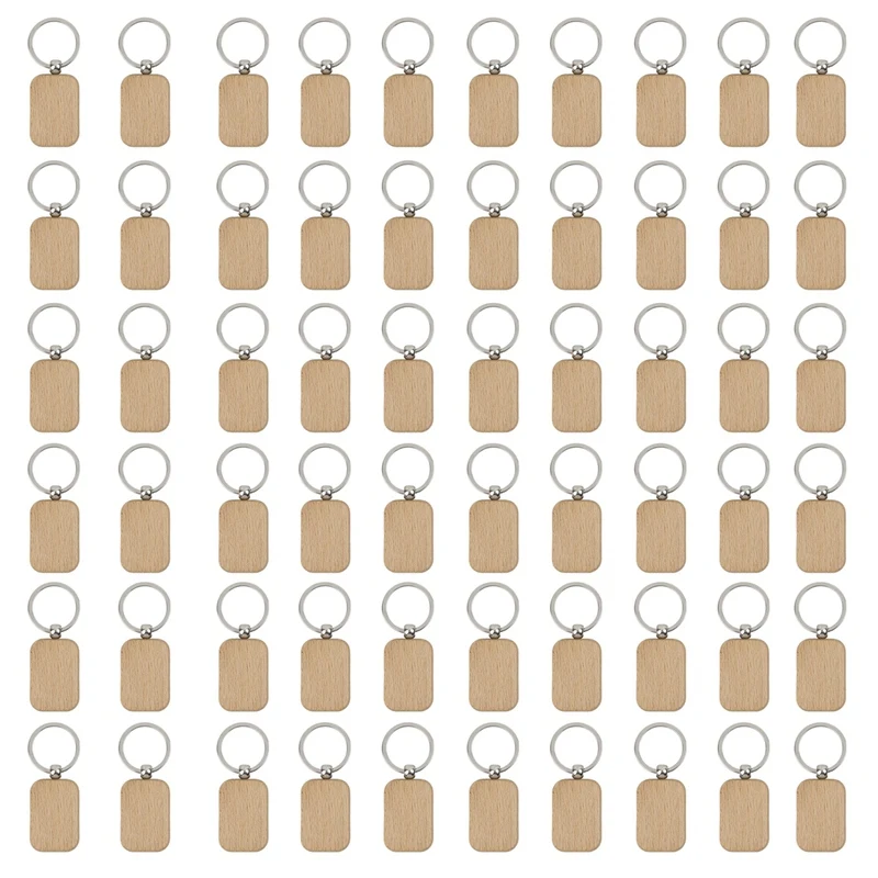 Пустые скругленные прямоугольные деревянные Брелоки для ключей, деревянные Брелоки для ключей сделай сам, можно выгравировать, подарок сделай сам, 60 шт.