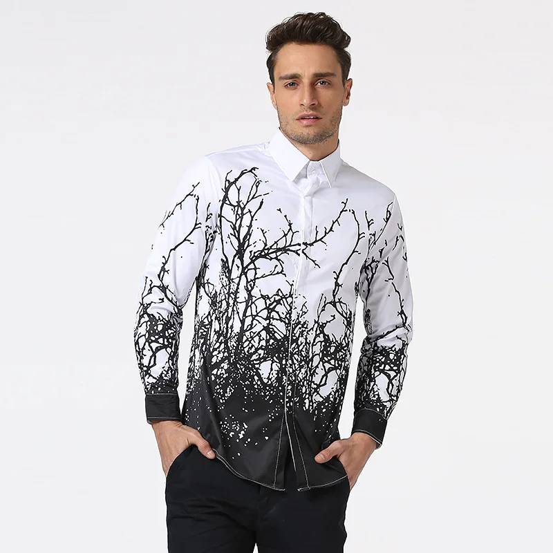 Новые мужские рубашки для весны. Индивидуальная печать на дереве. Большая рубашка с длинным рукавом 1314-c283