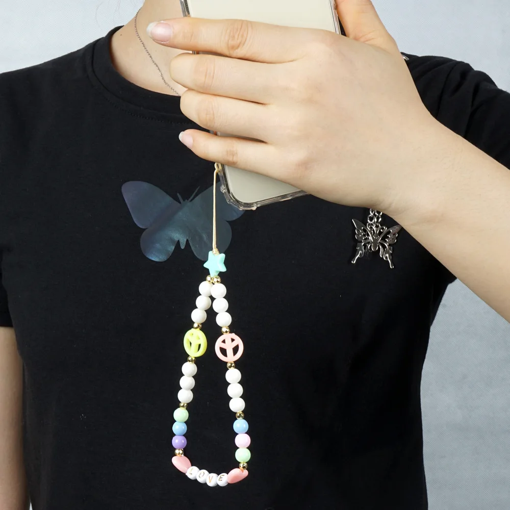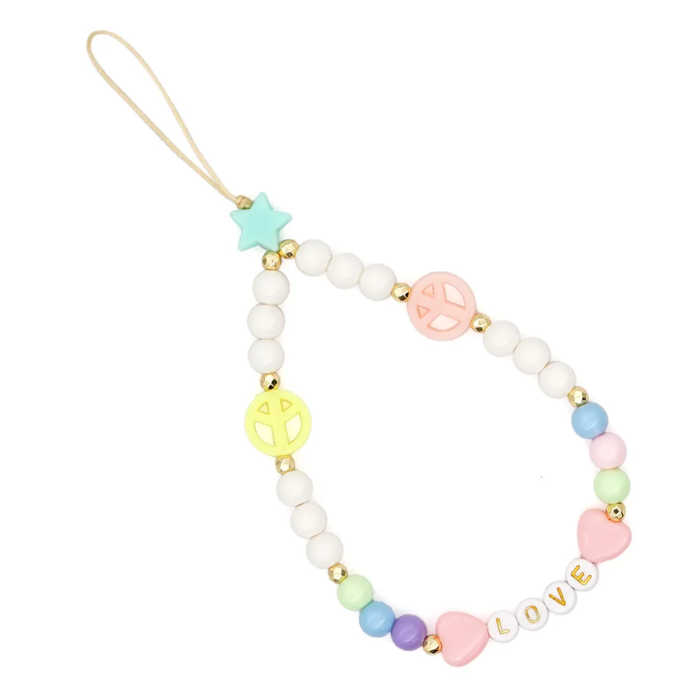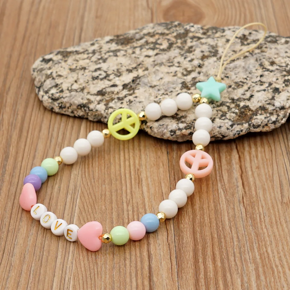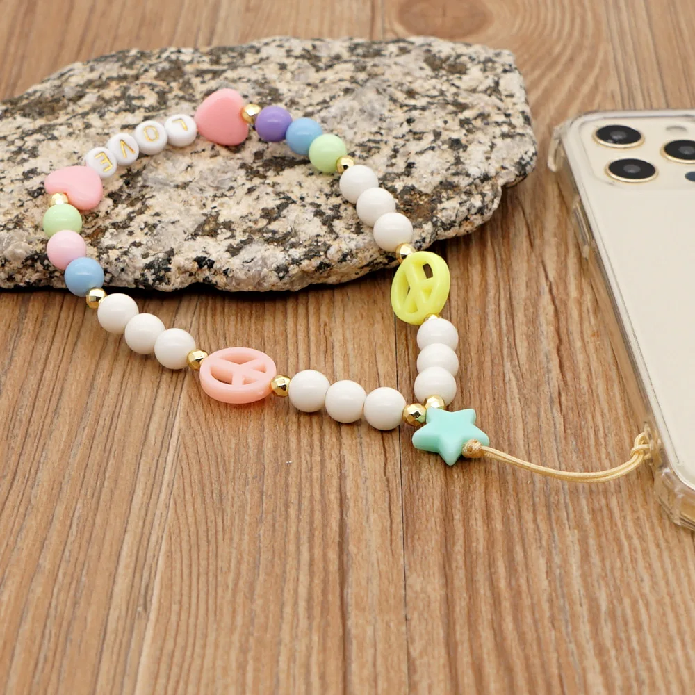 Простой в богемном стиле с принтом сердца и буквенным кулон Макарон Цвет смолы бисером мобильный телефон шнурки для женщин и девочек телефон ювелирные изделия