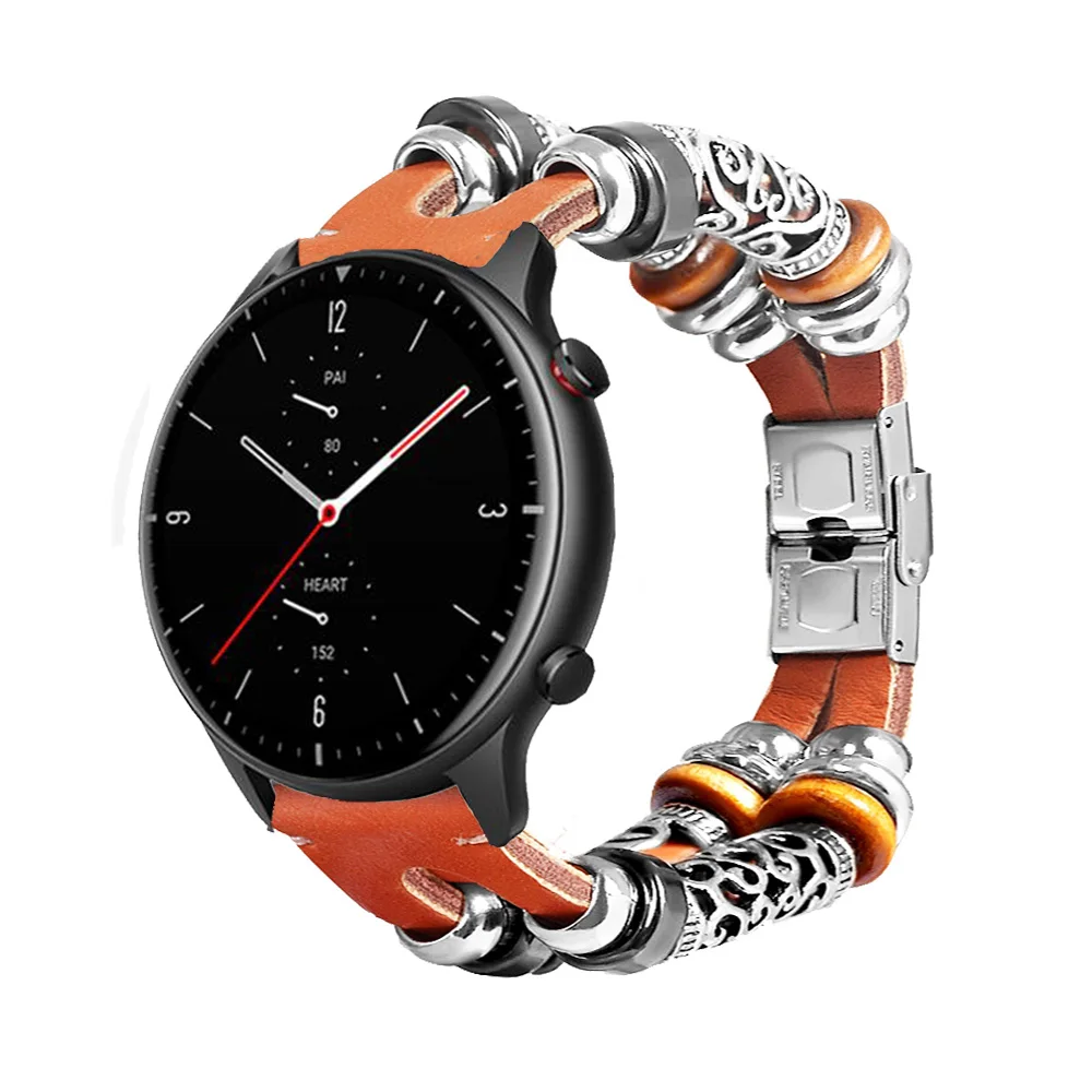 Ремешок для часов Huami Amazfit GTS с бисером в стиле ретро, кожаны...