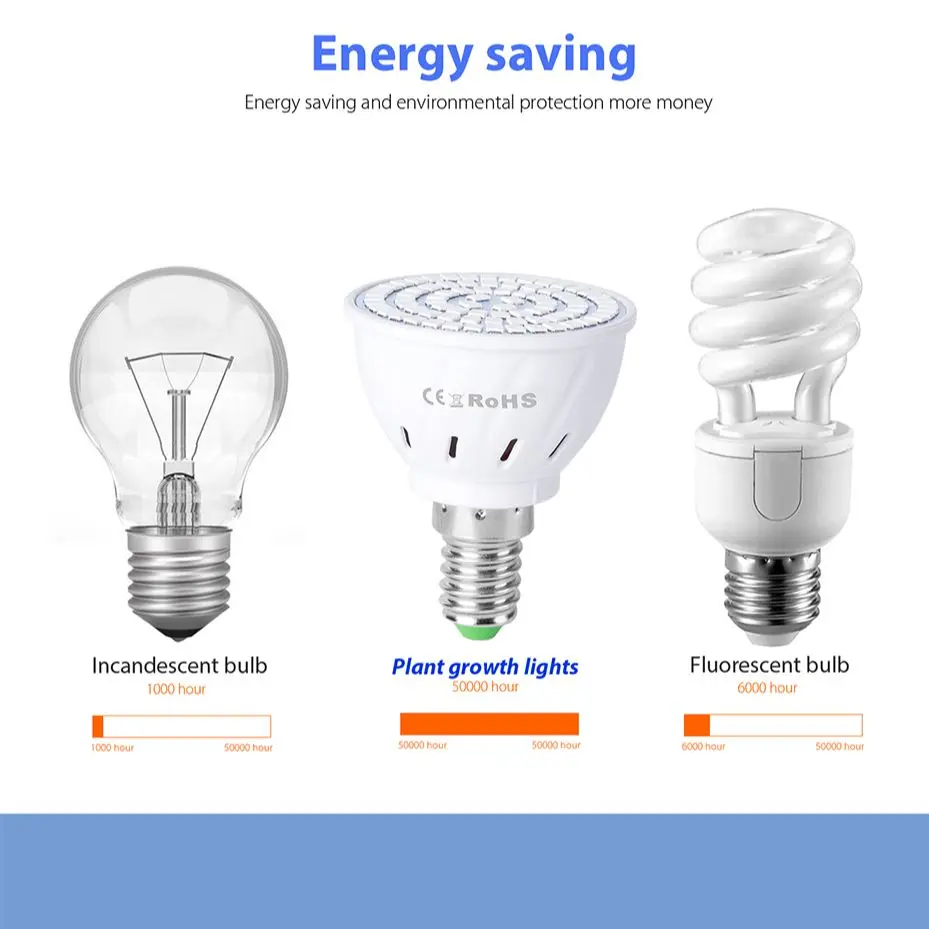 Светодиодная лампа полного спектра для выращивания растений, Е27, Е14, 220 В