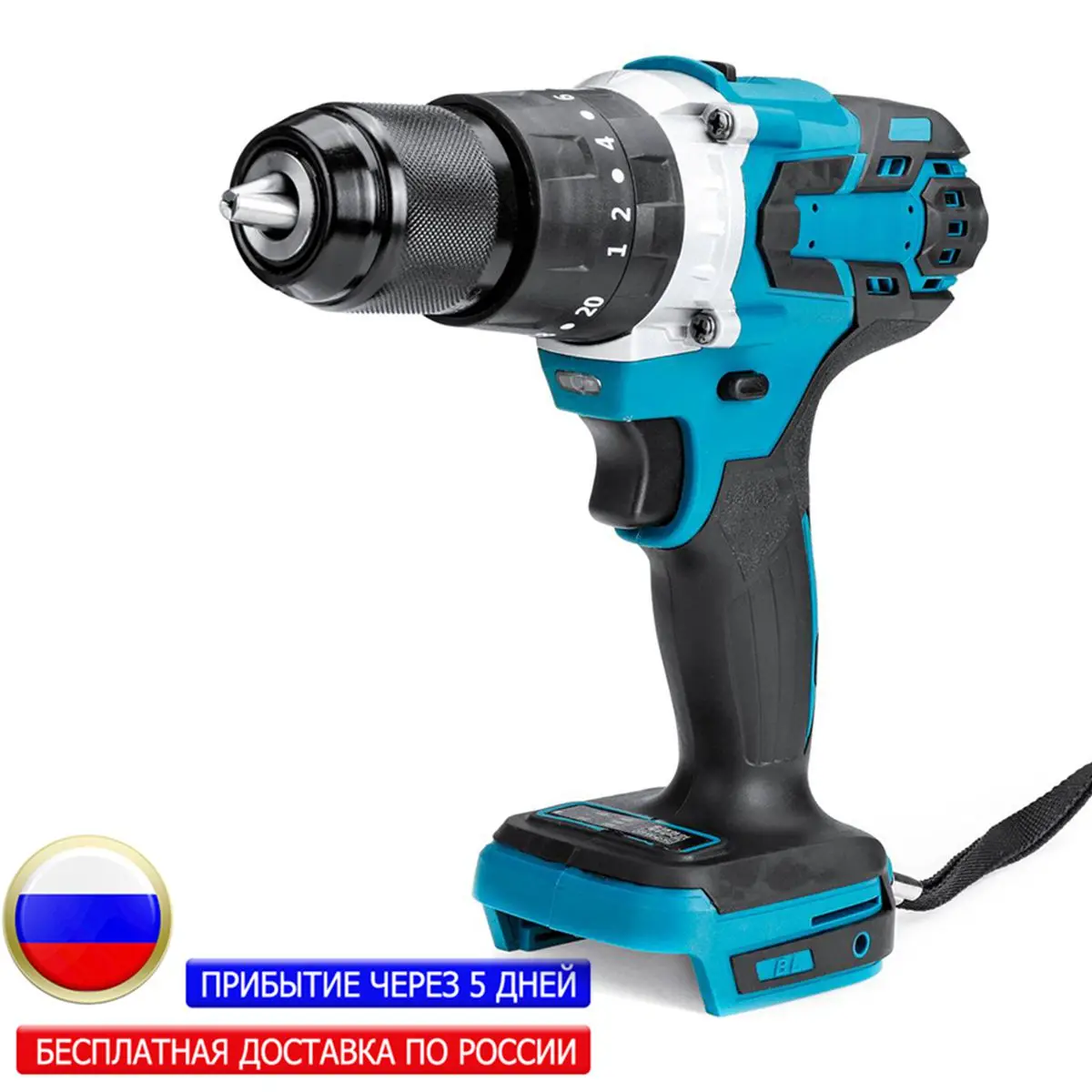 Бесщеточная электрическая Ударная дрель 3 в 1, Электрическая отвертка 13 мм 20 + 3, беспроводная ударная дрель с крутящим моментом для батареи Makita 18 в