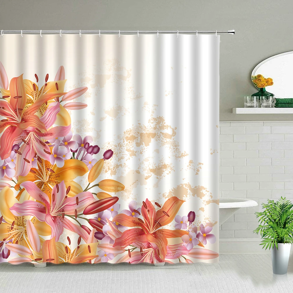 Занавеска для душа с изображением цветов растений, Весенняя комнатн...