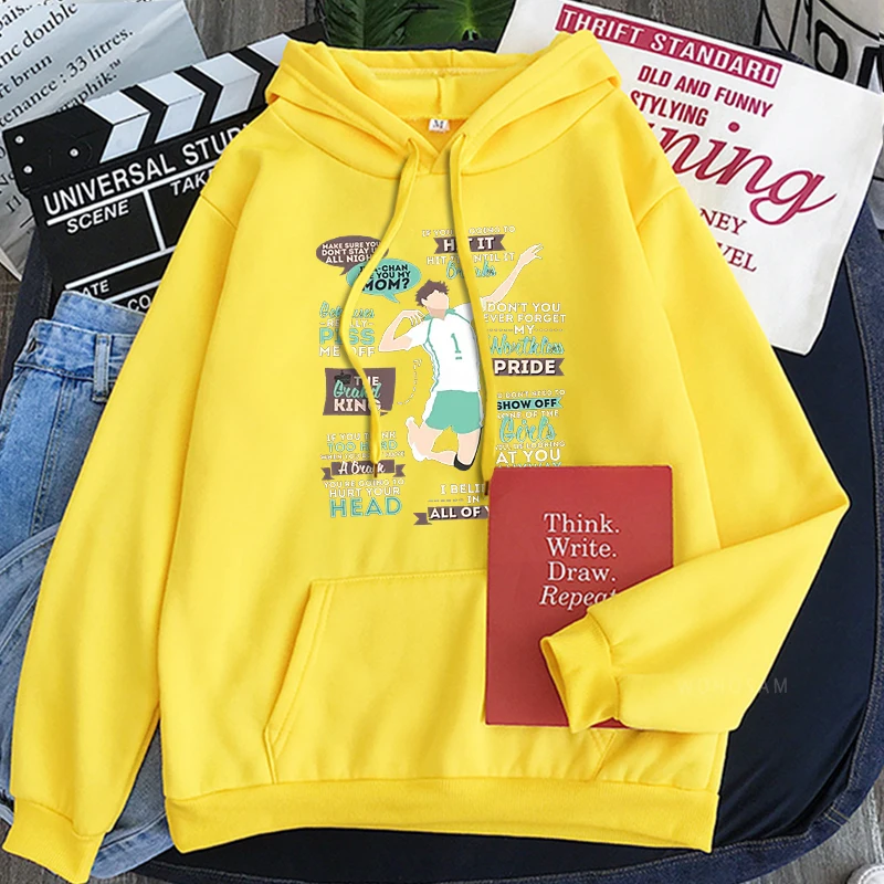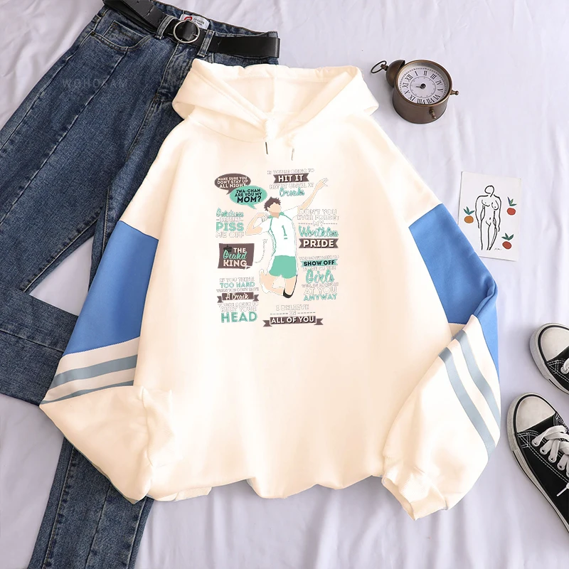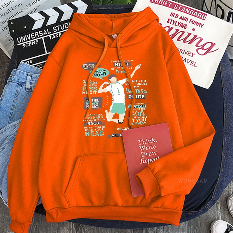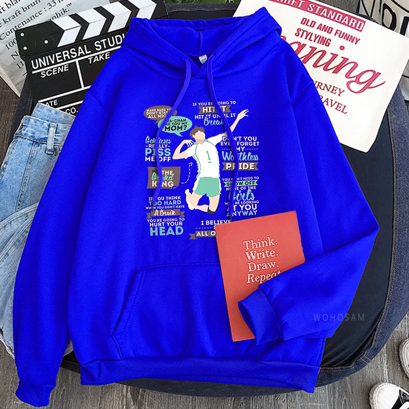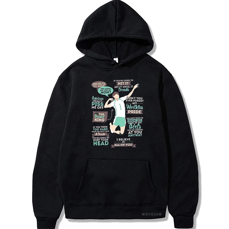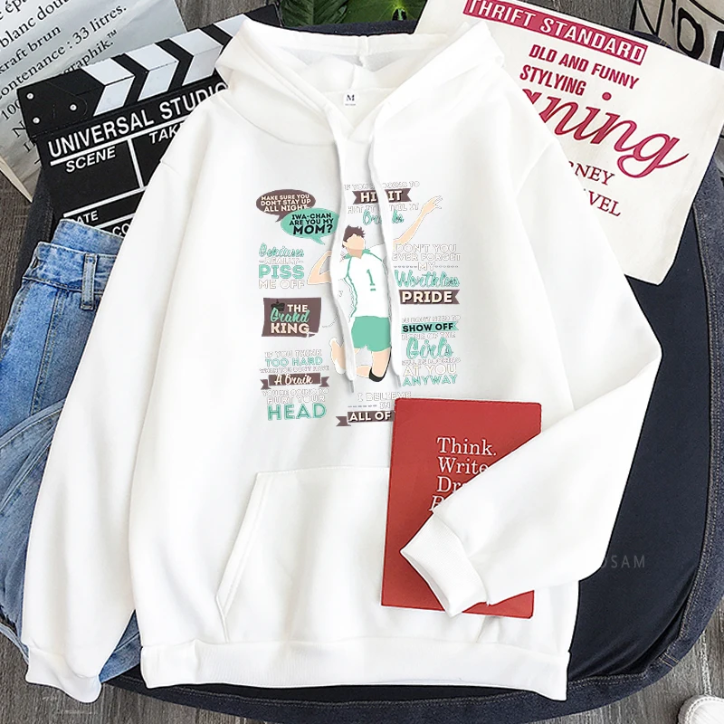 Толстовки с капюшоном Harajuku Anime Haikyuu The Grand King - Oikawa Tooru, смешная мультяшная мужская одежда унисекс, зимние свитшоты в стиле пэчворк