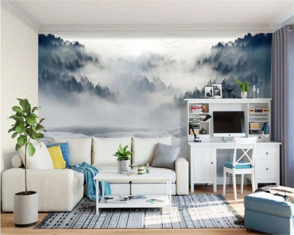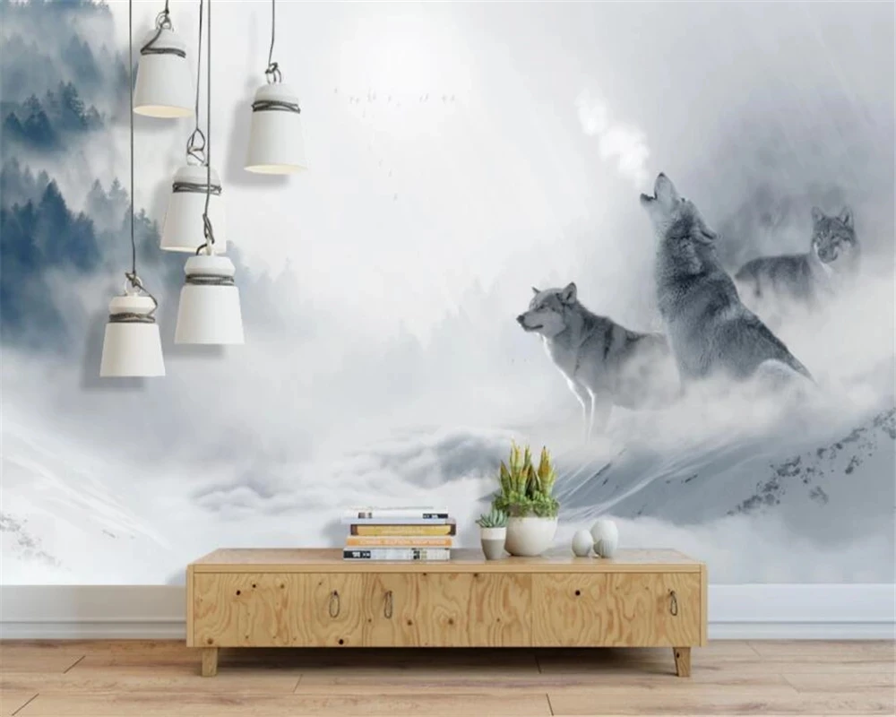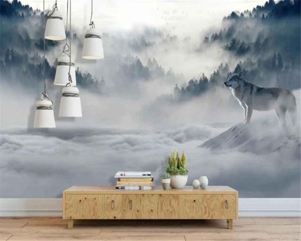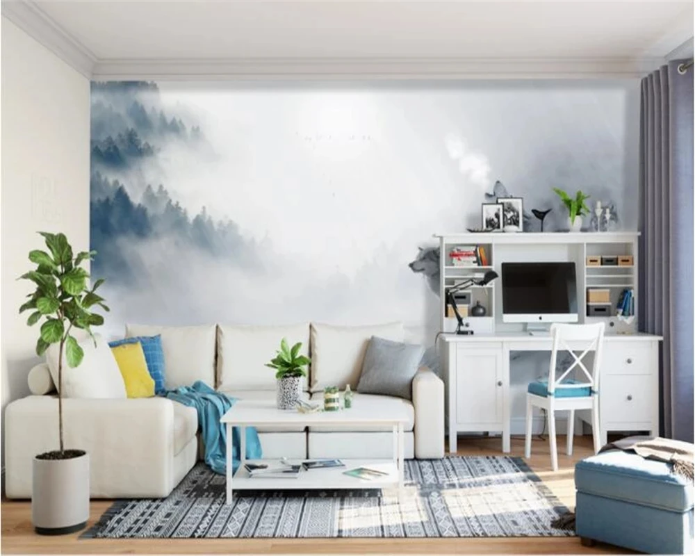 3d-фрески на заказ, настенные водонепроницаемые самоклеящиеся обои в скандинавском стиле с абстрактным изображением тумана, леса, волка, пейзажа, для гостиной