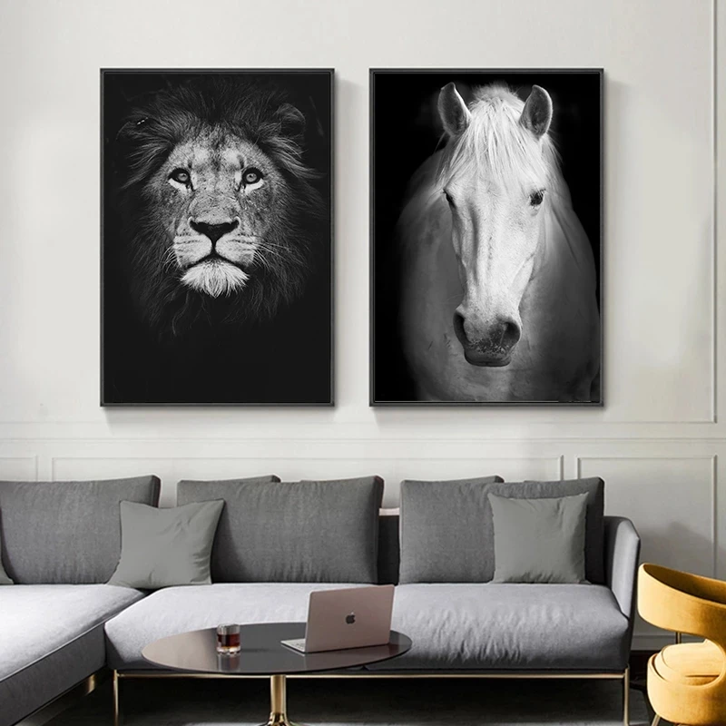 Абстрактное искусство животное лев черно-белая Картина на холсте но...