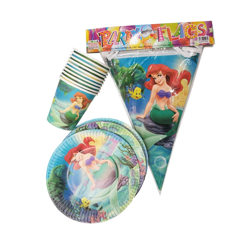 Маленькая Русалочка Ариэль тематические товары для вечеринок Disney детская одноразовая посуда на день рождения скатерть чашка Подарочный пакет украшение торта