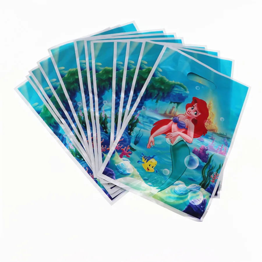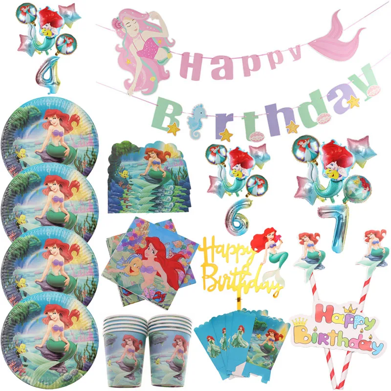 Вечерние принадлежности для маленькой русалки Ариэль Дисней, одноразовая посуда для дня рождения, скатерть, Подарочная сумка, украшение для торта