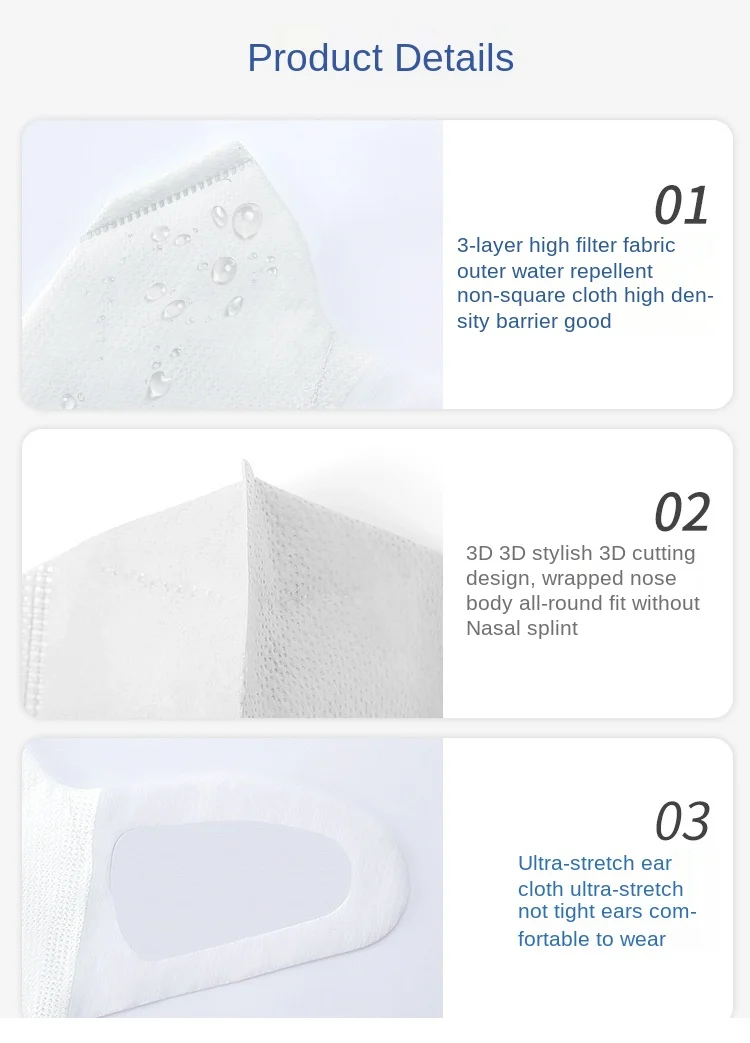 3D Disposable Face Mask 3-layer with Melt Blown Cloth Dust-proof Br...