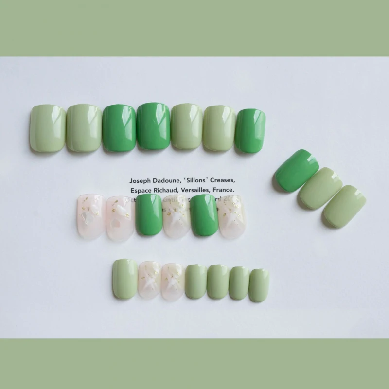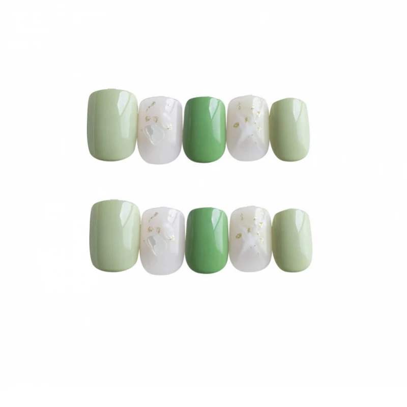 GAM-BELLE Летний зеленый мраморный узор накладные ногти с дизайном французский короткий полное покрытие искусственное художественное оформление ногтей