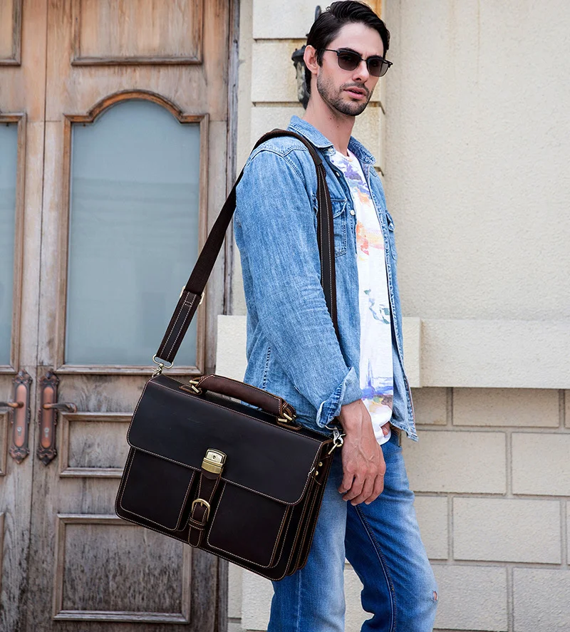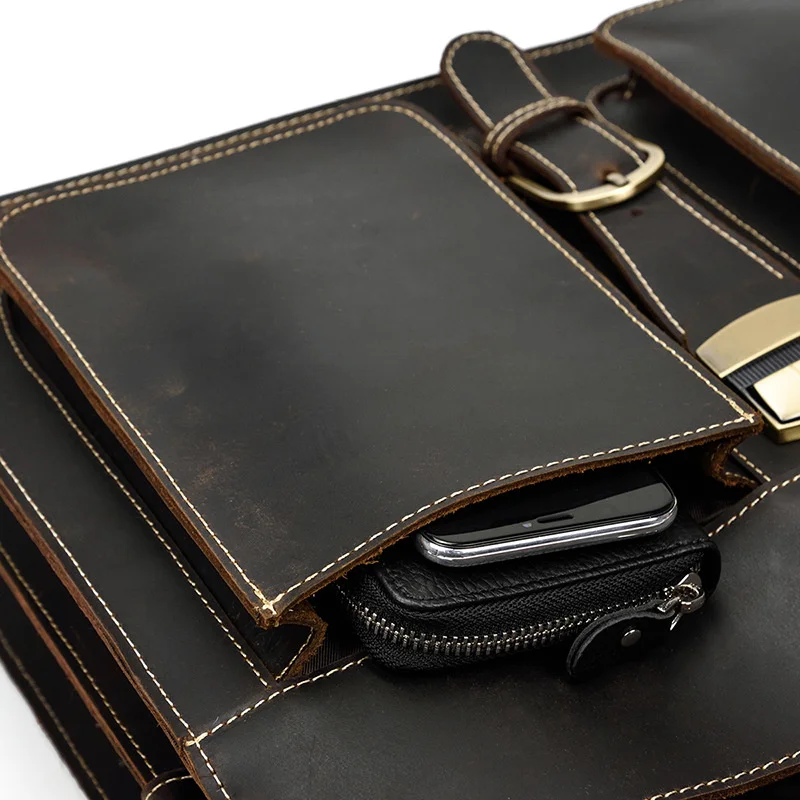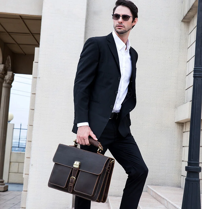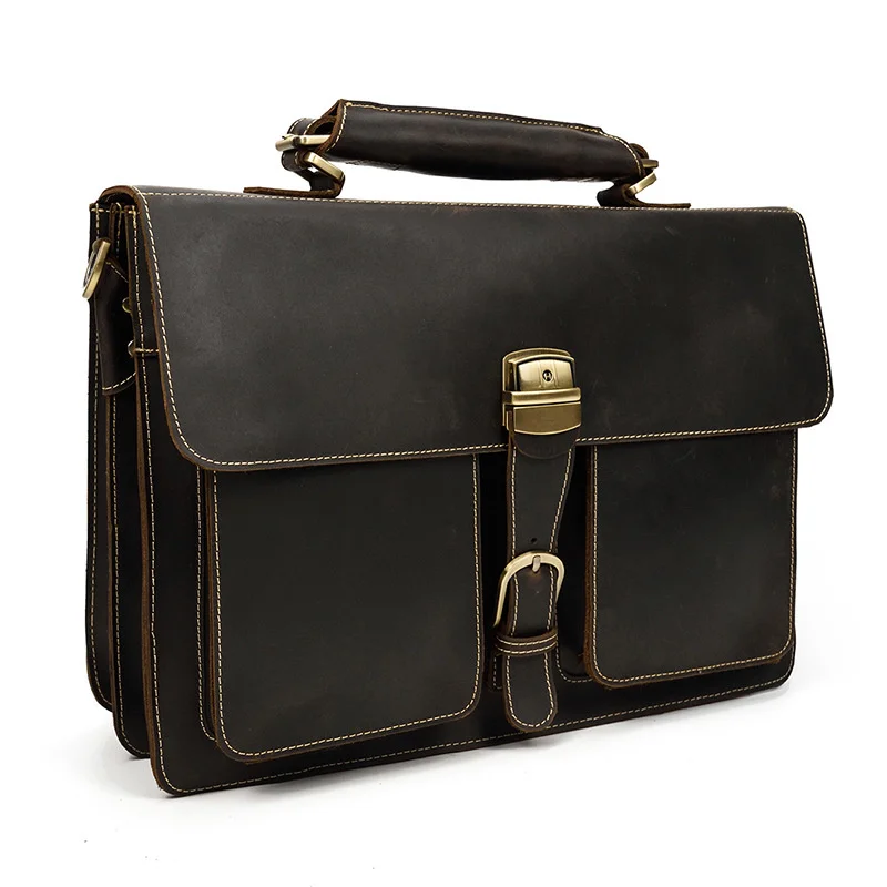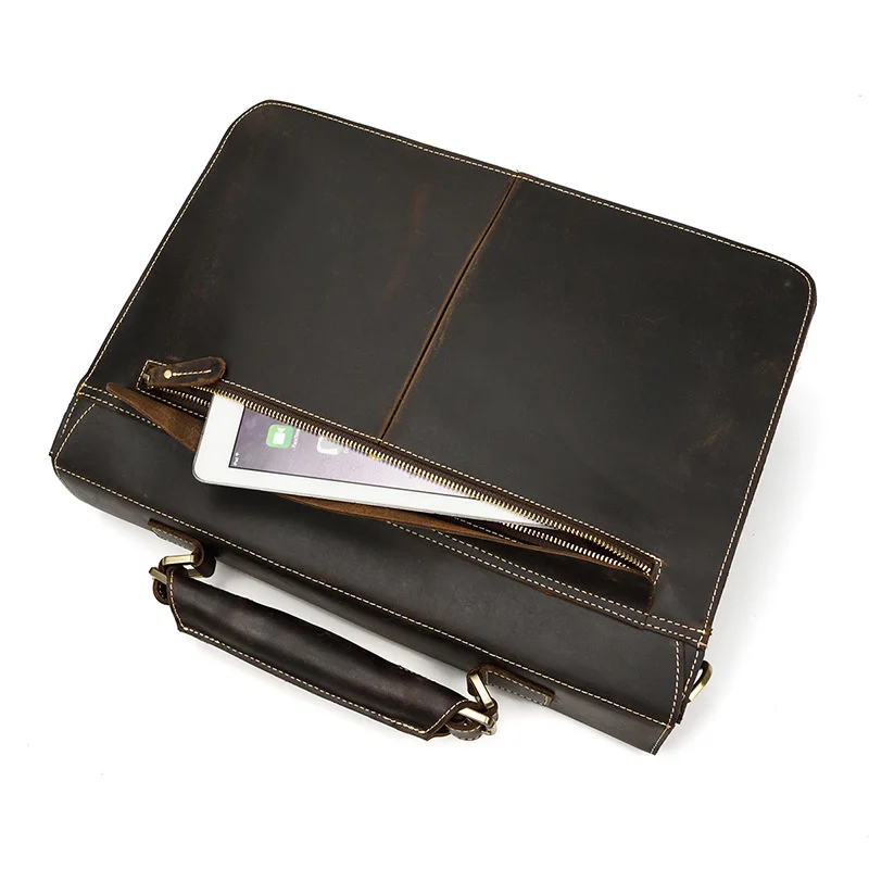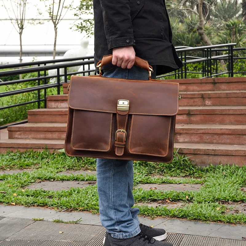 Мужской кожаный портфель, ретро, мужская сумка Crazy Horse, Кожаная двойная, Мужская t, 14 дюймов, сумка для ноутбука, сумка-мессенджер