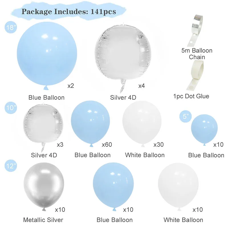 141 шт. синий Макарон воздушные шары гирлянда арочный комплект с бантом для свадебной церемонии, душ мальчик девочки; дети 1st День рождения украшения воздушные Globos