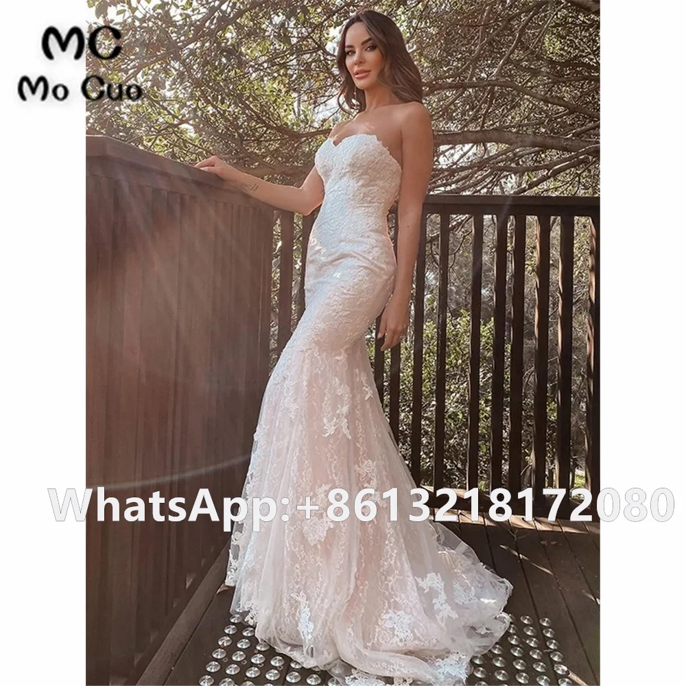 Женское свадебное платье с юбкой-годе, фатиновое платье с кружевной аппликацией, со шлейфом, со шнуровкой сзади, 2021