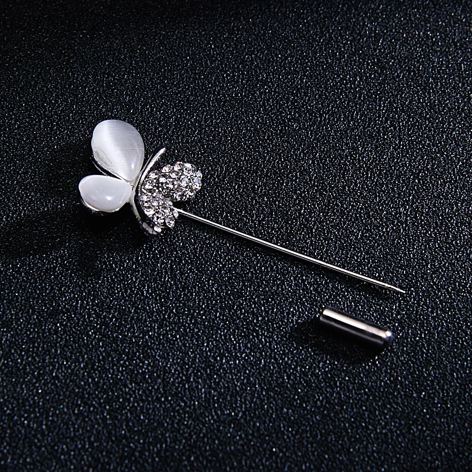 Rinhoo Серебряный Цвет Кристалл Бабочка Броши на воротник для женщин длинная игла жемчужная булавка брошь насекомое ювелирные изделия аксессуар для одежды