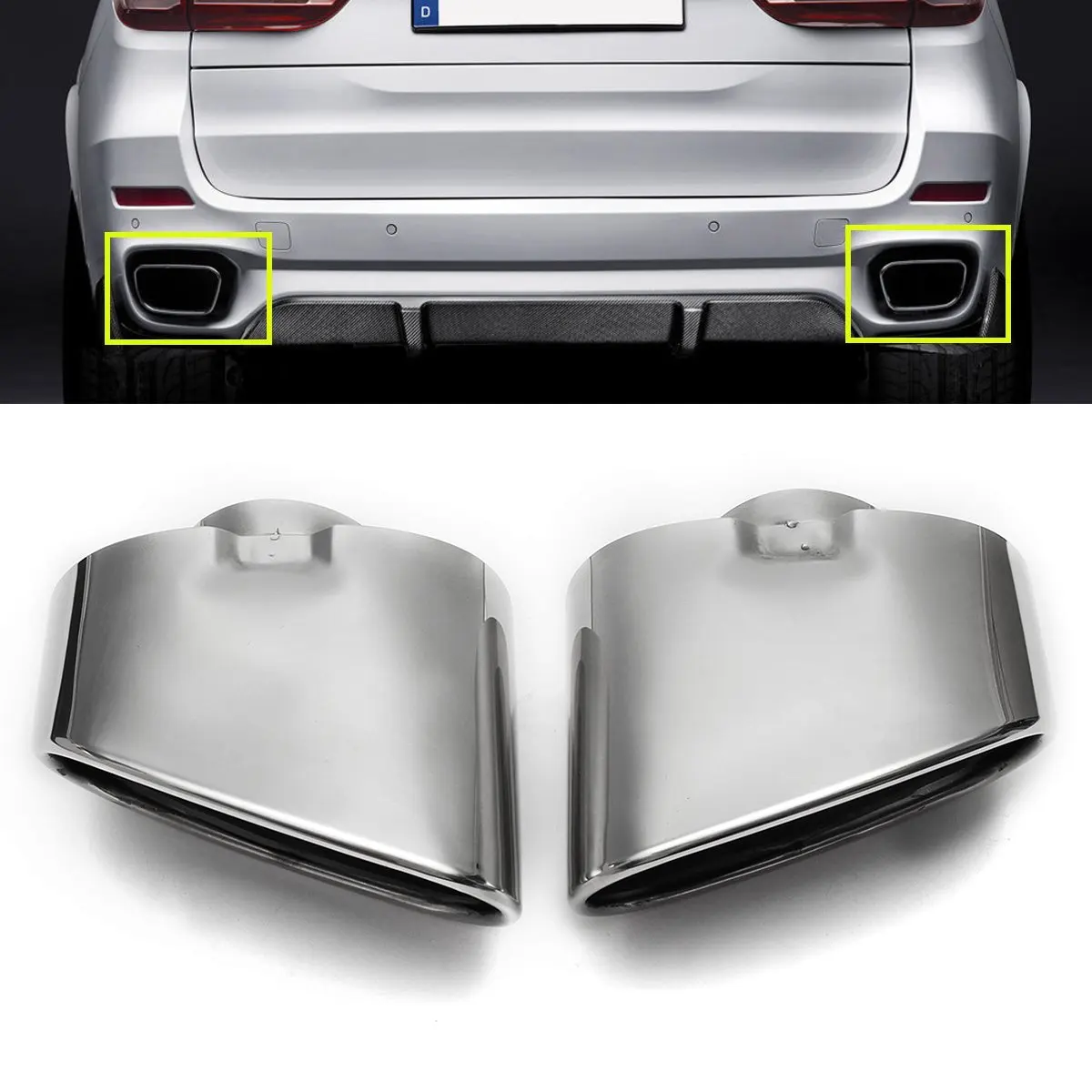 Пара наконечников выхлопной трубы для BMW X5 E70 E53 2000-2016, двойной глушитель выхлопной трубы, крышка трубы, аксессуары для стайлинга автомобиля из нержавеющей стали