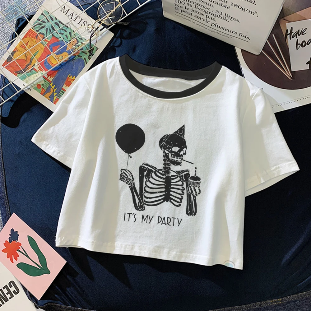 E-Харадзюку футболка с графическим принтом 90s, m, l для женщин в винтажном стиле кроп топ со смешным рисунком Y2K или надписью It's My вечерние летние; Готическая обувь в стиле панк; Тонкий короткий топ на бретелях