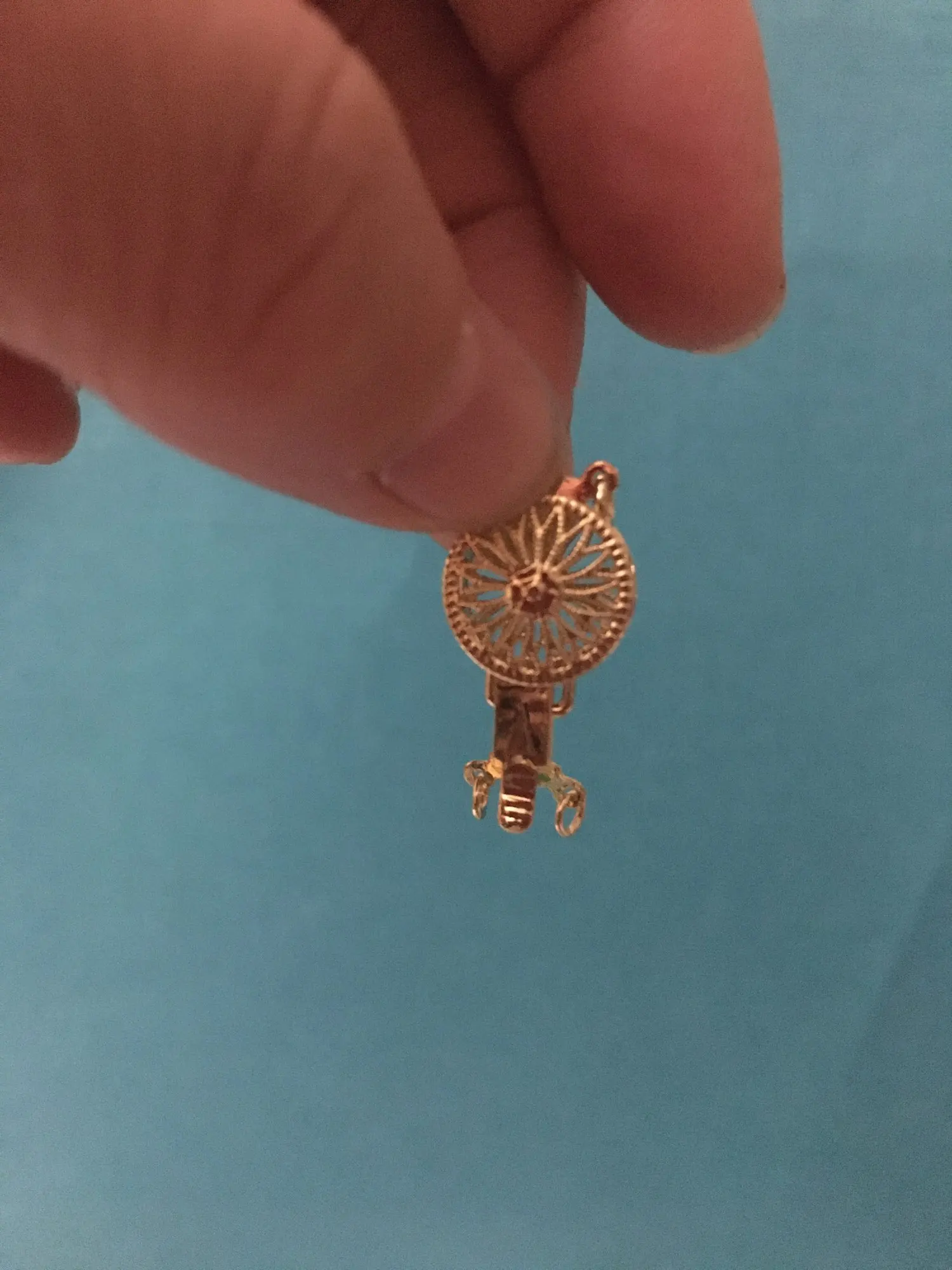 В золотом цвете плохо открывается, попробовала разжать немного, чтоб язычек вышел до конца, теперь после закрытия туго открывается. В серебре проблем нет, всё чётко. Застёжки не такие маленькие как пишут в коментах, на фото пример с бусинами 12мм на 16 мм