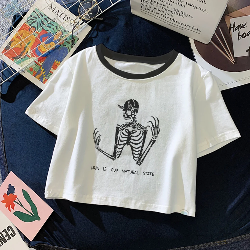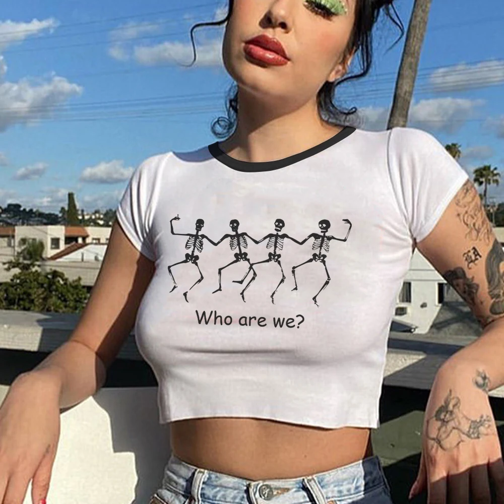 2021 Новый Для женщин топы Y2K эстетическое пикантные милые летние Y2K 90s Винтаж кто мы Летний облегающий короткий топ в готическом стиле