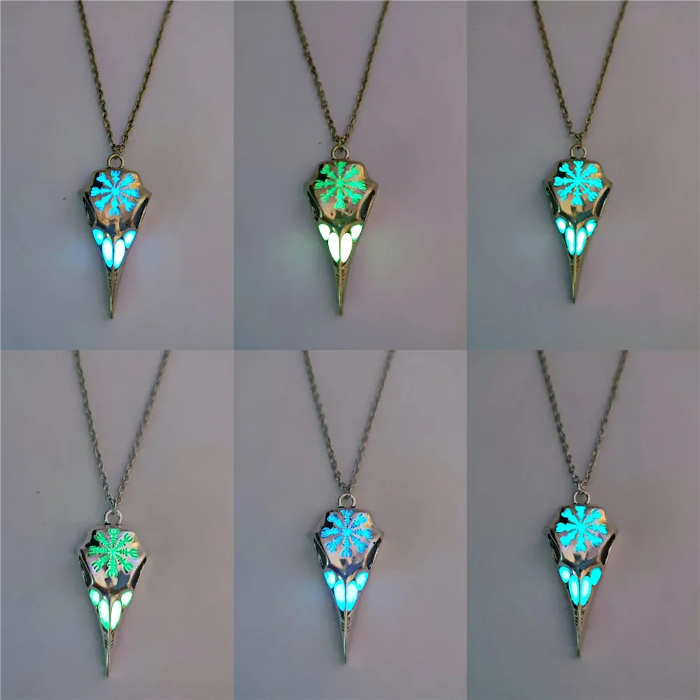 Ожерелье со светящейся птицей-вороном, с орлом Викинга, череп ворона головы скелета, ожерелье для женщин, мужчин, подростков, светится в темноте ювелирные изделия