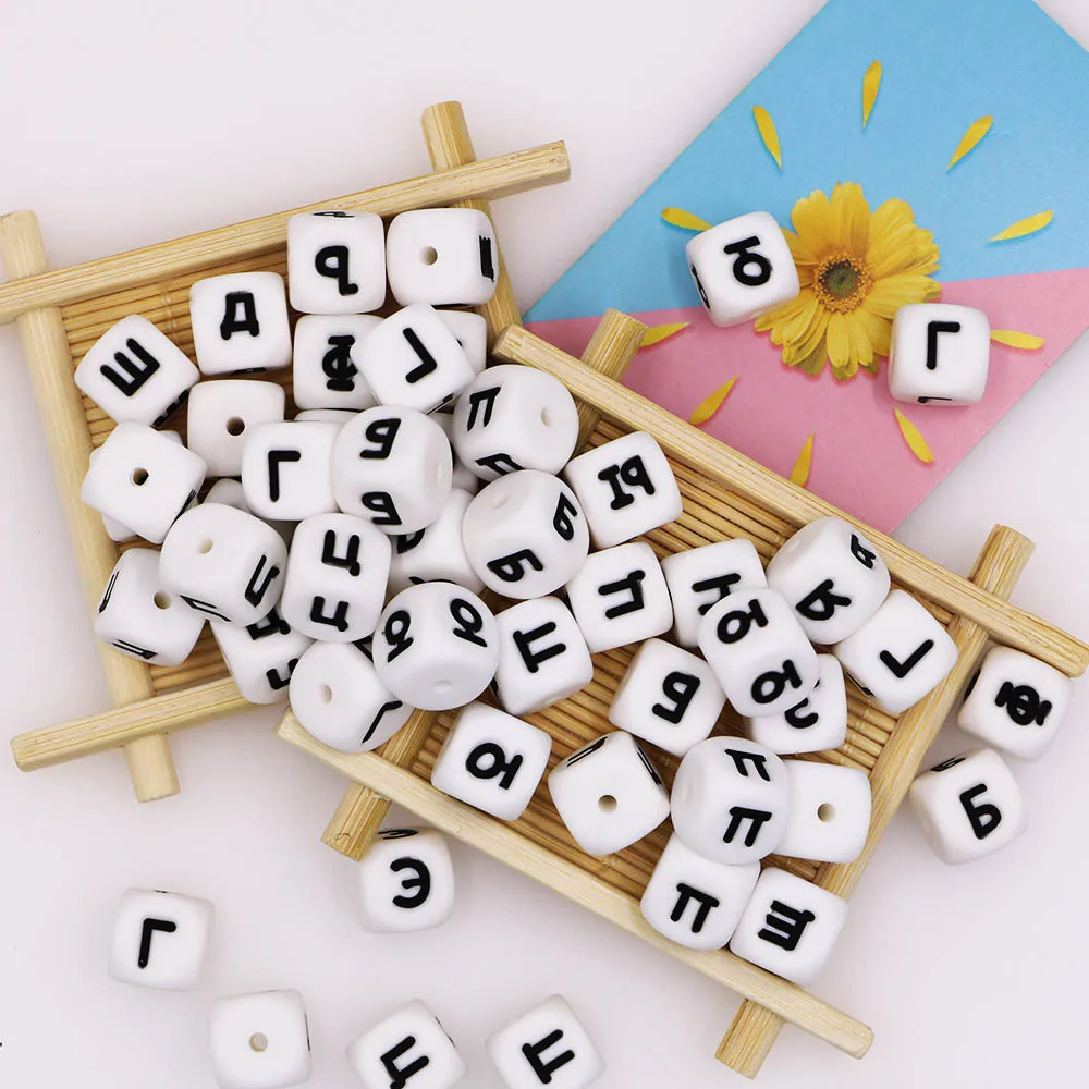 Kovict 20 шт. силиконовые бусины с русским алфавитом, буквы 12 мм, забота о зубах, Teethering, сделай сам, цепочка для соски, ожерелье, подарок, BPA бесплатно