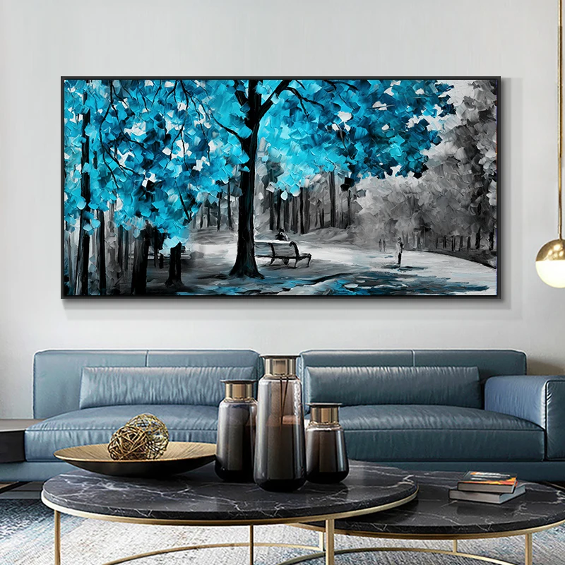 Абстрактная картина маслом с синими и желтыми листьями, холст, плакат, Современная Скандинавская Настенная картина, гостиная, домашний декор, квадраты
