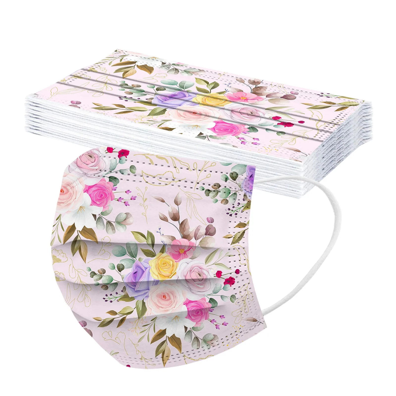 10 шт. Модные женские одноразовые маски с цветами 3-слойная защитная маска для рта дышащая Регулируемая Маска для рта украшение для вечерние маска