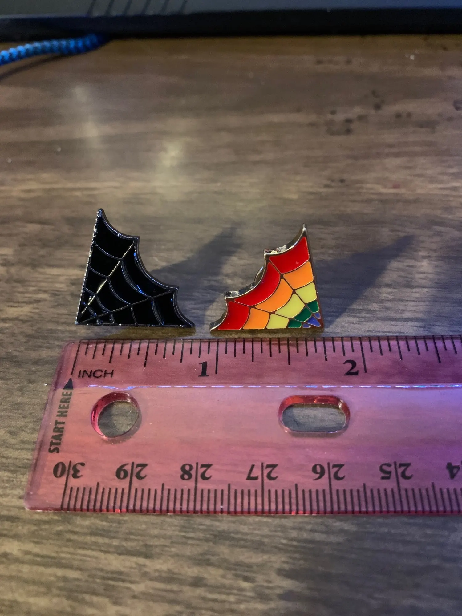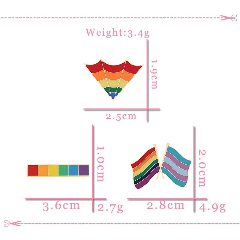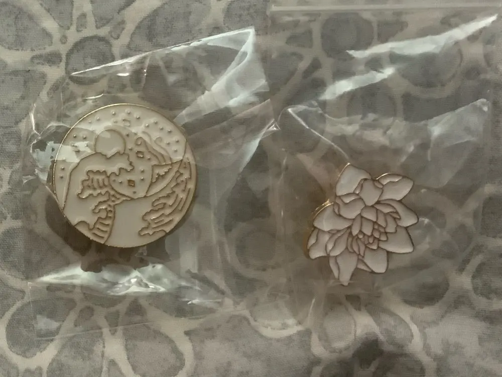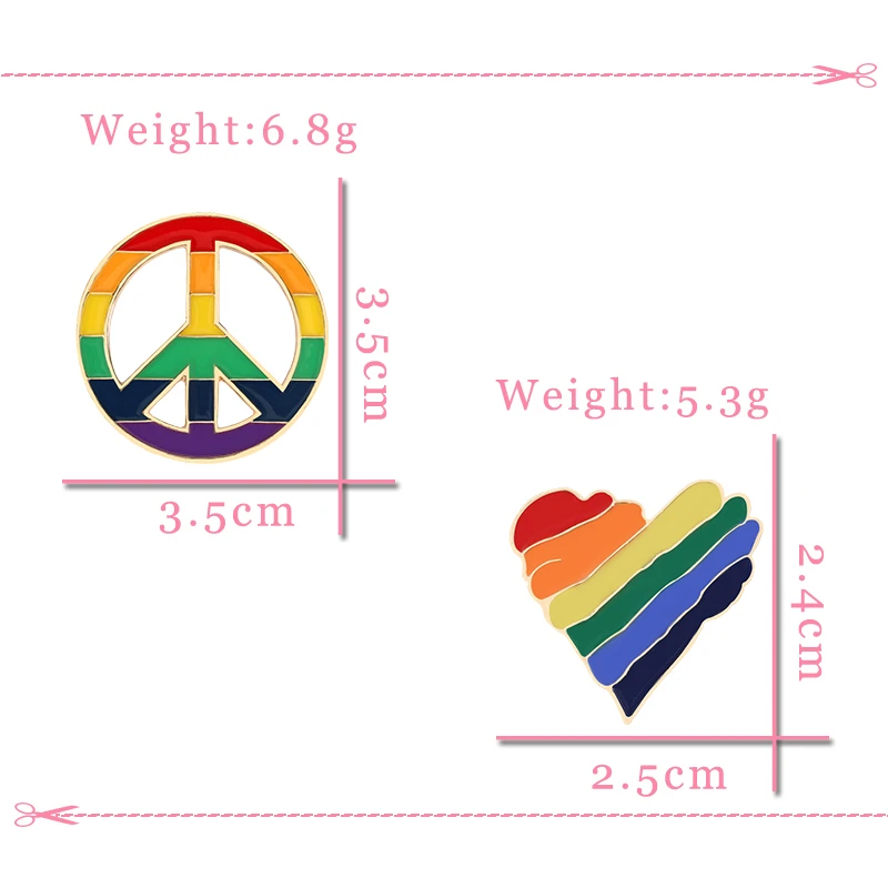 Colors are accurate and they were packaged nice. Shipping was about a month. They are both metal with metal pin backs. Though the rainbow one has a cheap feeling pin back. Like cheaper than usual, but it’s not terrible.