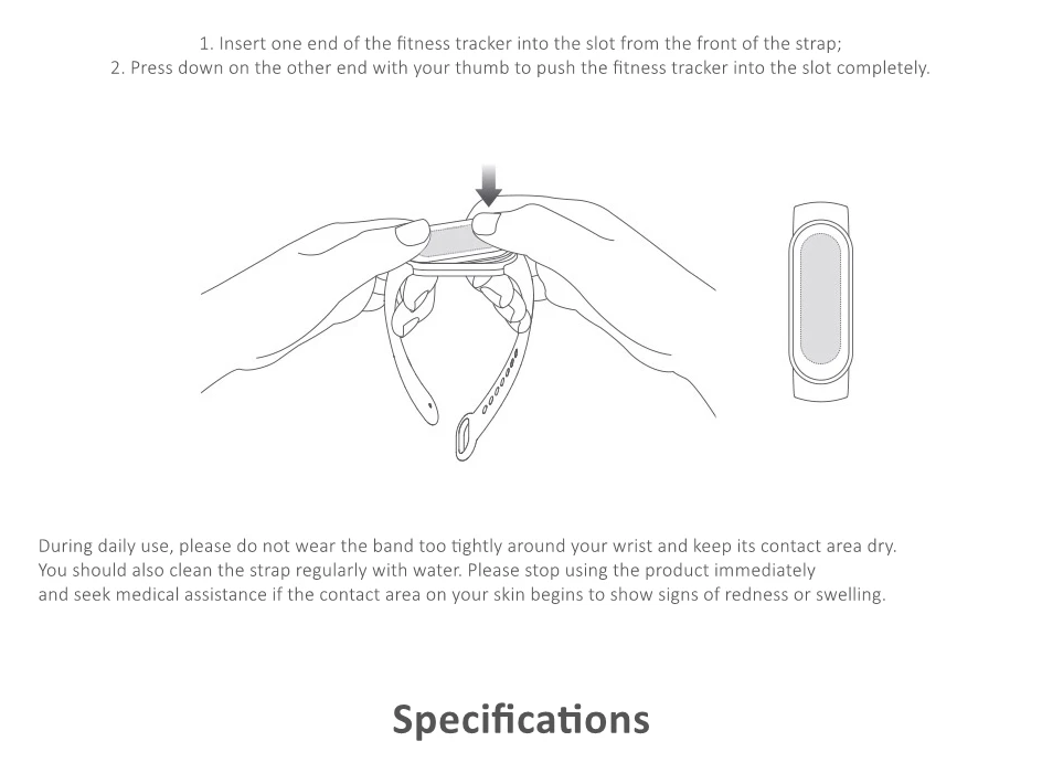* Ремешок Mi Smart Band 6 прошел заводское моделирование, где один цикл рассматривается как загрузка тела фитнеса спереди, удаление сзади, повторная загрузка с задней стороны, а затем снятие с передней части (Количество раз разборки и сборки браслета должно соответствовать требованию не менее 500 раз). После завершения теста на разборку браслет не имеет видимой деформации или дегумминга, и фитнес-трекер надежно сидит внутри ремешка. Данные тестирования и результаты получены в лаборатории Huami.
