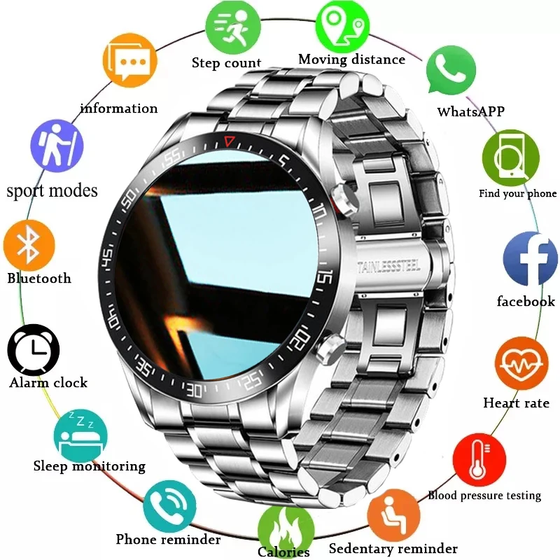 [Многофункциональные часы]-Мужские умные часы с Полноразмерным сенсорным экраном IPS HD, черным металлическим циферблатом, ремешком из нержавеющей стали, стильным внешним видом и удобными в носке. 6 тем циферблата можно переключать по желанию, настраиваемая тема часов. Часы поддерживают входящие звонки, SMS, уведомления о сообщениях приложения, удаленную камеру, напоминание о сидячем положении, будильник, секундомер, таймер, Поиск телефона, регулировка яркости, не беспокоить режим и другие функции, чтобы удовлетворить ваши ежедневные потребности.