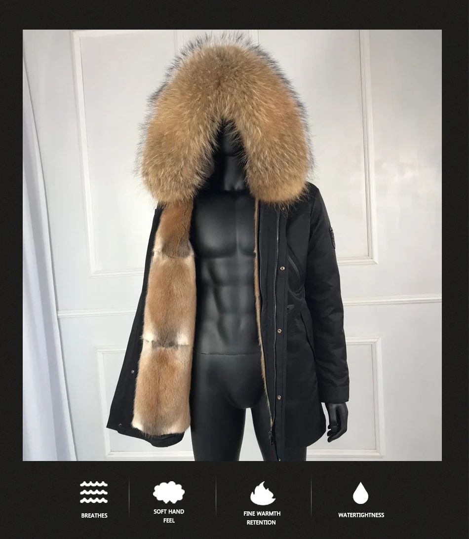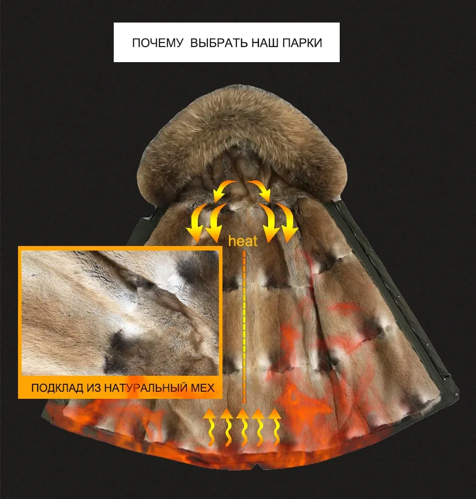 Мужская Зимняя Куртка парка 100% натуральный Лисий мех с кроличьим ...