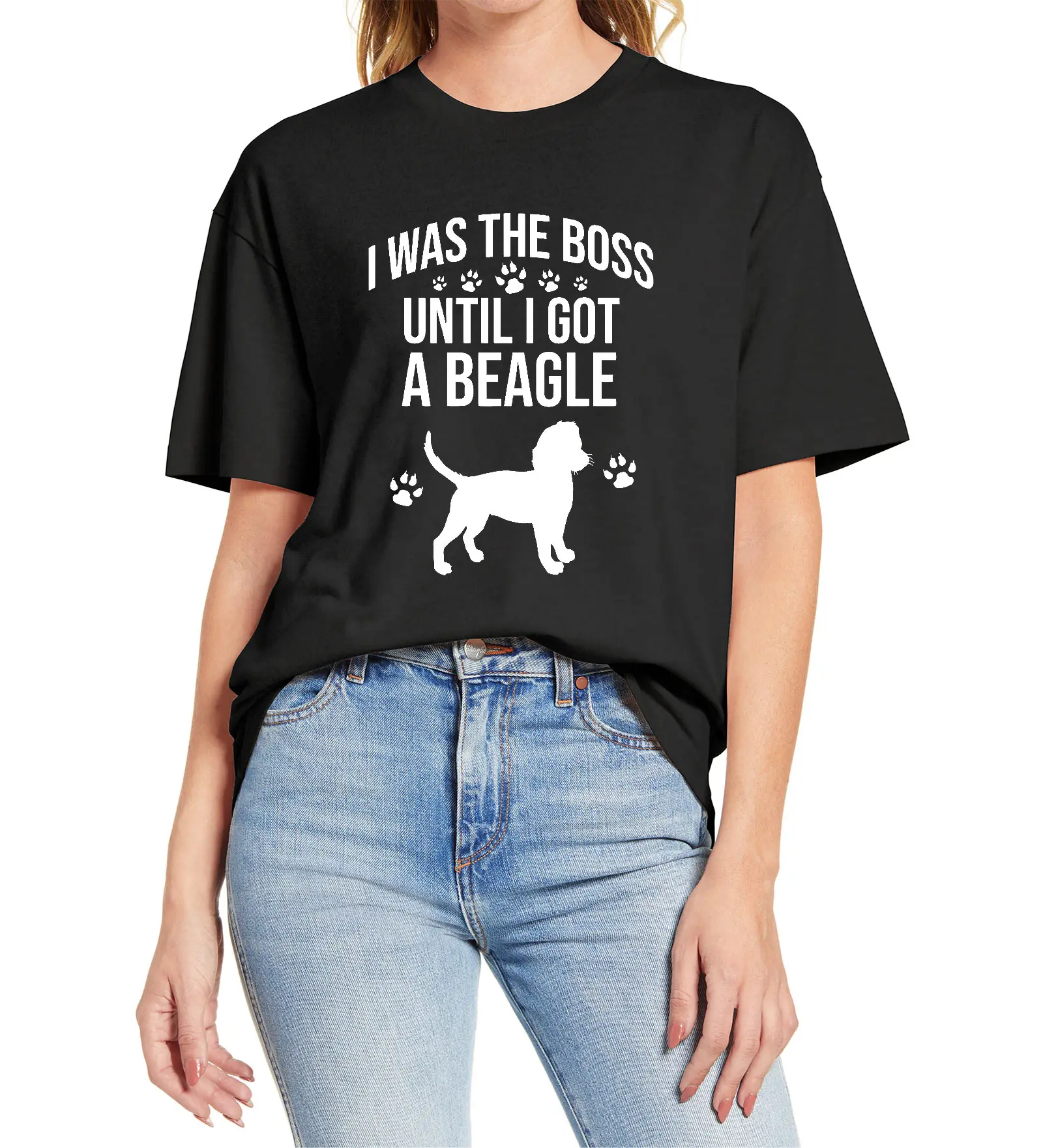 Женская футболка с принтом я была боссом до того, как получил Бигль, забавная Футболка с принтом собаки, женская футболка с коротким рукавом, хлопковые топы унисекс, футболка