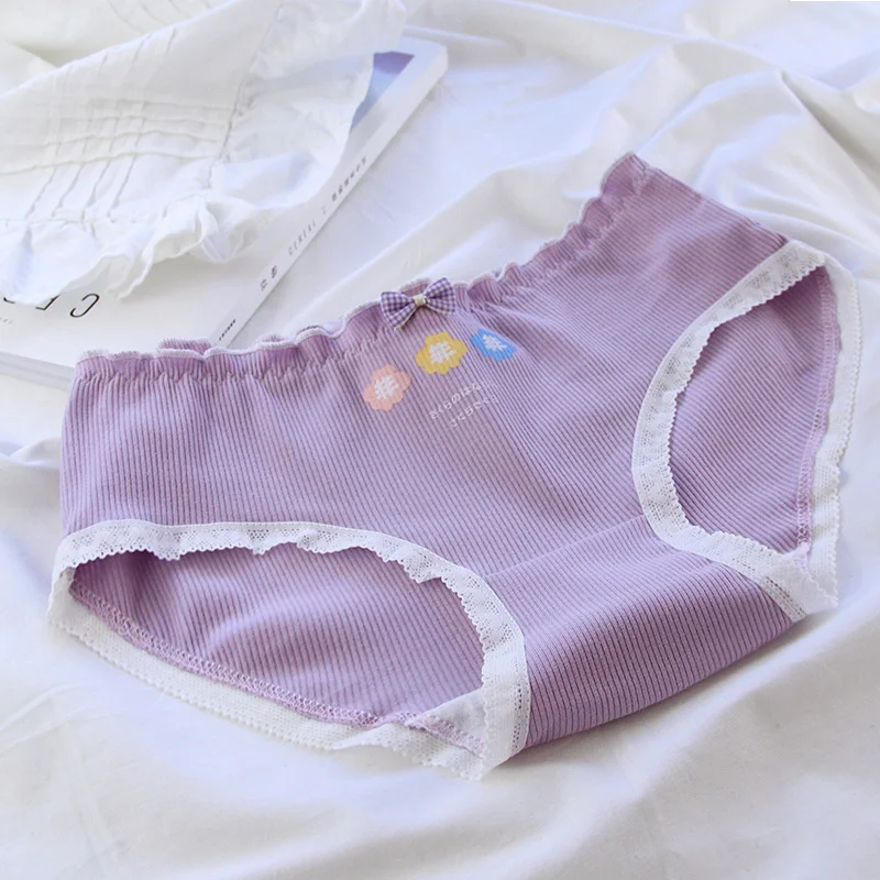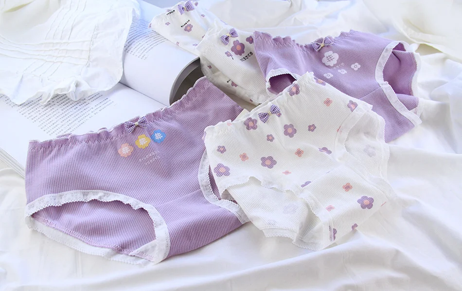 SP & CITY, женское нижнее белье с фиолетовыми цветами и рюшами, хлопковые трусики с милым принтом и бантом, женское нижнее белье, дышащие Бесшовные трусы