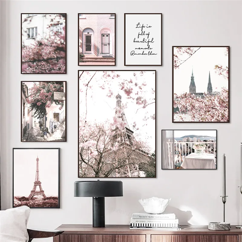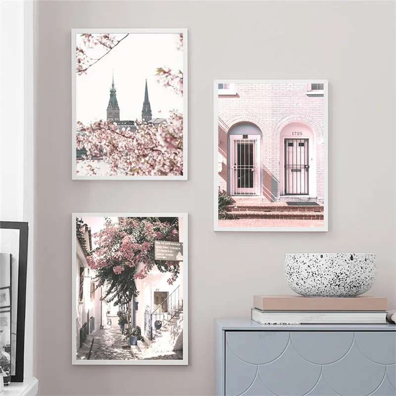 Пейзаж Декор стены искусства картина без рамки розовый пейзаж с цветком печати современный минималистский домашний декор для спальни