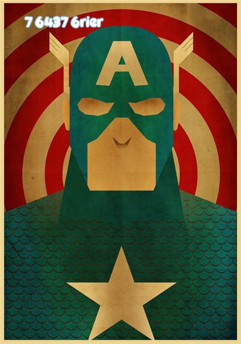 С рисунком из мультфильмов, в стиле ретро; Супергероев Marvel Аватар Капитан Америка Железный человек Человек-паук, Росомаха плакат из крафт-бумаги, ручной стержень, для кафе, для стены Стикеры A216