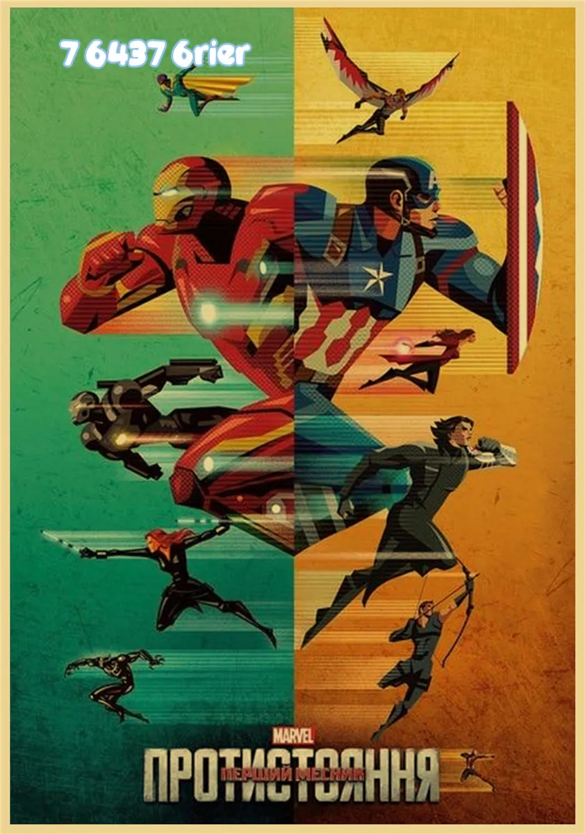 Постер серии Marvel с супергероями, декоративный Рисунок из крафт-б...