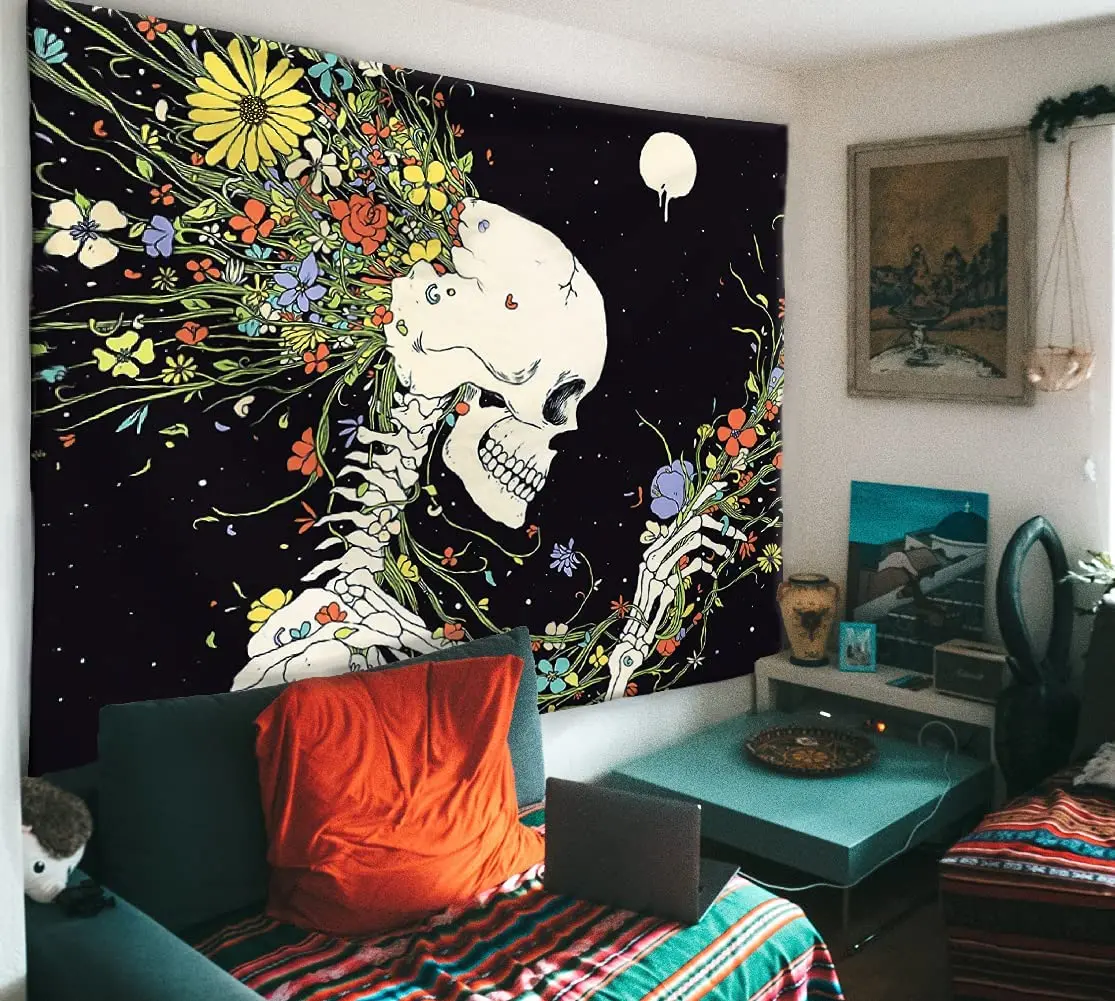 2022 гобелен с черепом Hawkalice, гобелены со скелетом, декор для комнаты, гобелен в стиле хиппи, настенный гобелен для спальни, эстетика 60X60 дюймов